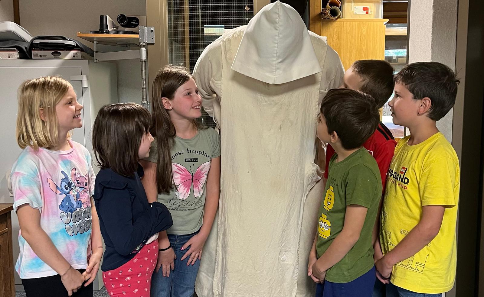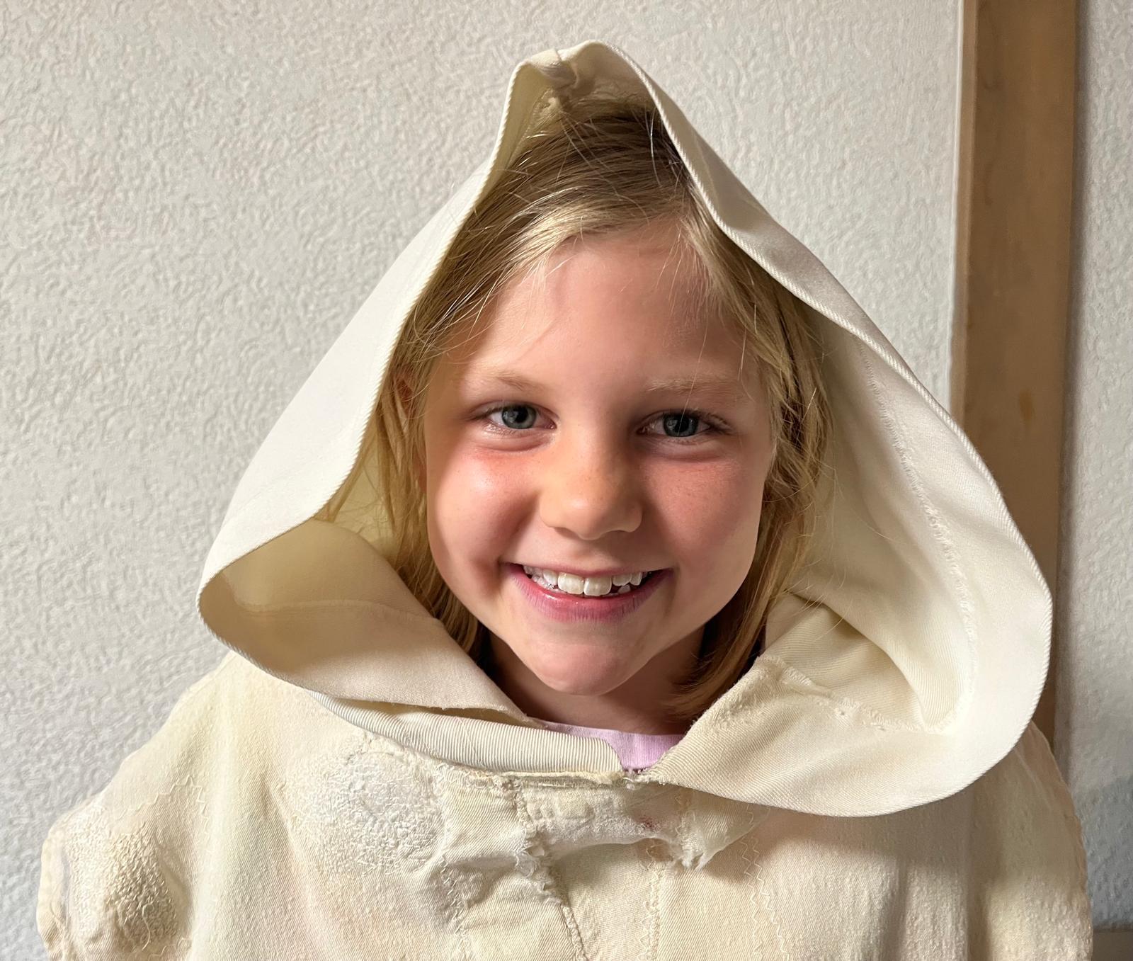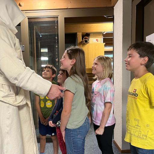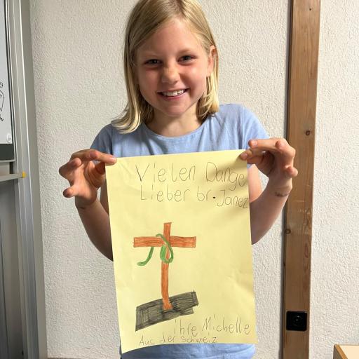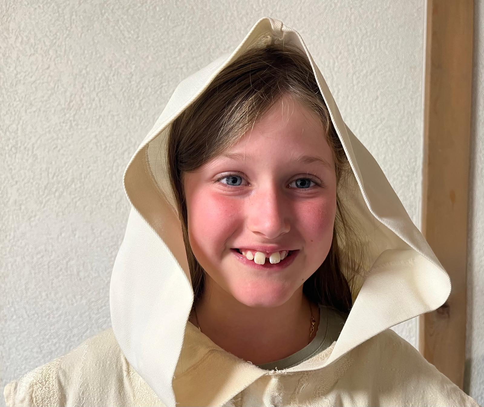 Heute durften wir einen ganz besonderen KUW Nachmittag erleben. Zu Beginn sprachen wir gemeinsam das «Unser Vater». Danach erinnerten wir uns an den letzten KUW Nachmittag: Die Geschichte der kupfernen Schlange, ein Zeichen dafür, dass Gott heilt und Hoffnung schenkt. Besonders aufregend war der Besuch von Herrn Arnold, mit seiner echten Schlange! Ein weiteres Highlight war das Kunstwerk von Bruder Janez, einem 92-jährigen Kartäusermönch. Psalm 23 hörten wir heute auf Lateinisch, gesungen von echten Kartäusermönchen. Ihre Stimmen waren wie ein sanfter Wind, der unser Herz berührte. Wir lauschten ganz still. Dann «besuchte» uns Niclaus Schürstein, ein Kartäusermönch, der vor 500 Jahren lebte. Wir durften sogar eine echte Kukulle anziehen. Das Obergewand der Kartäuser. Es war lustig und ehrfürchtig zugleich, einmal Kartäuser zu sein. Bruder Niclaus erzählte von seinem Weg mit Gott: Zunächst verstand er Jesus nur mit dem Verstand. Später erkannte er Ihn mit dem Herzen und wurde durch den Heiligen Geist versiegelt. Seine Geschichte zeigte uns, wie tief der Glaube an Christus wirken kann. Selbst ein Kartäusermönch wird davon verwandelt. Er erkannte, dass das Leben als Kartäusermönch nicht mit seinen biblischen Überzeugungen vereinbar war, und verliess daher den strengen katholischen Orden, um reformierter Pfarrer zu werden.