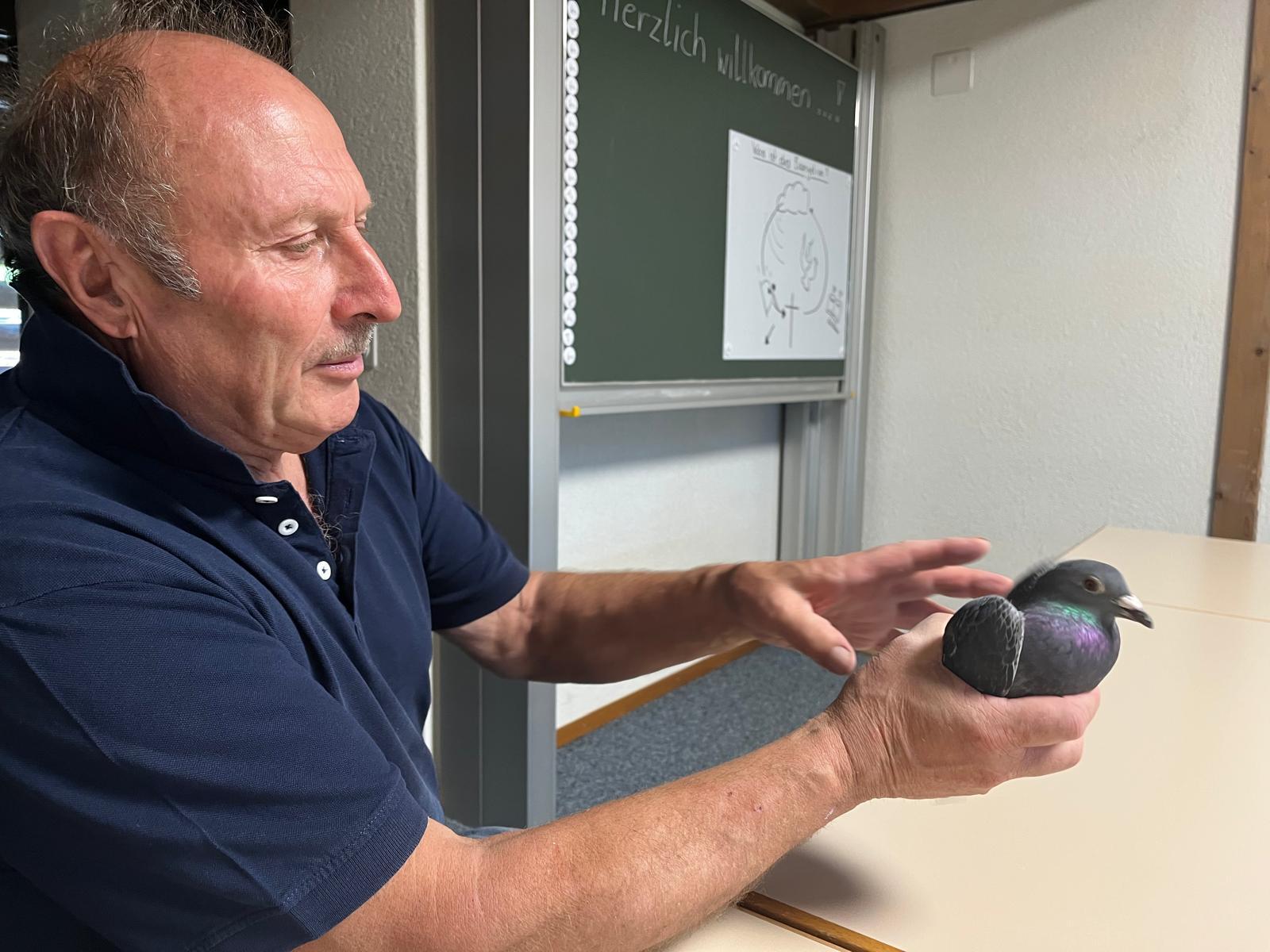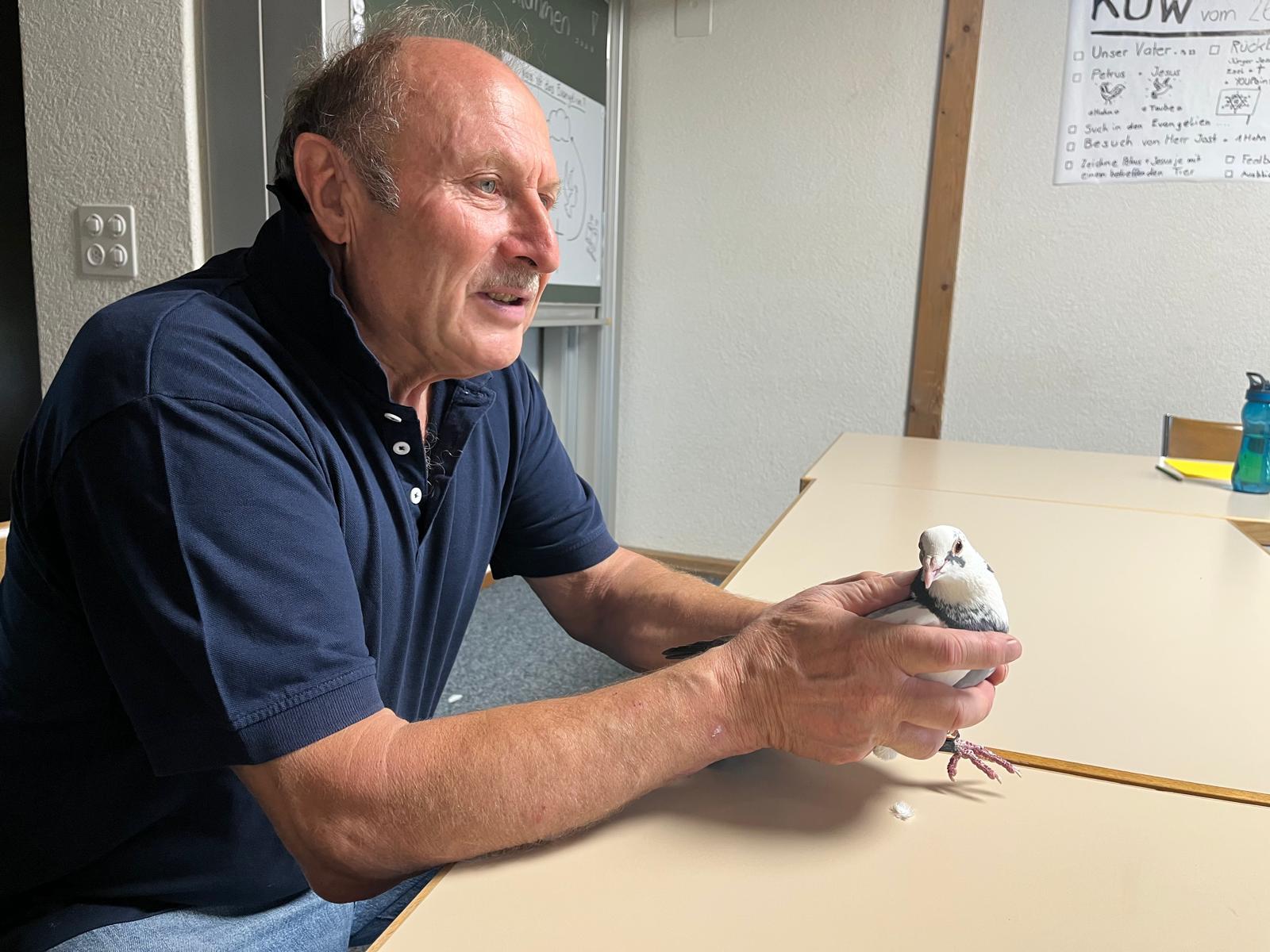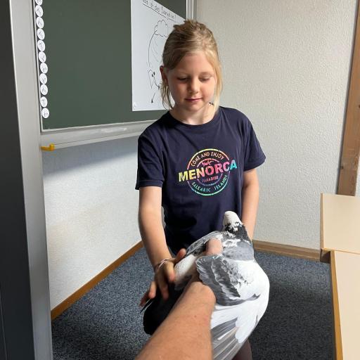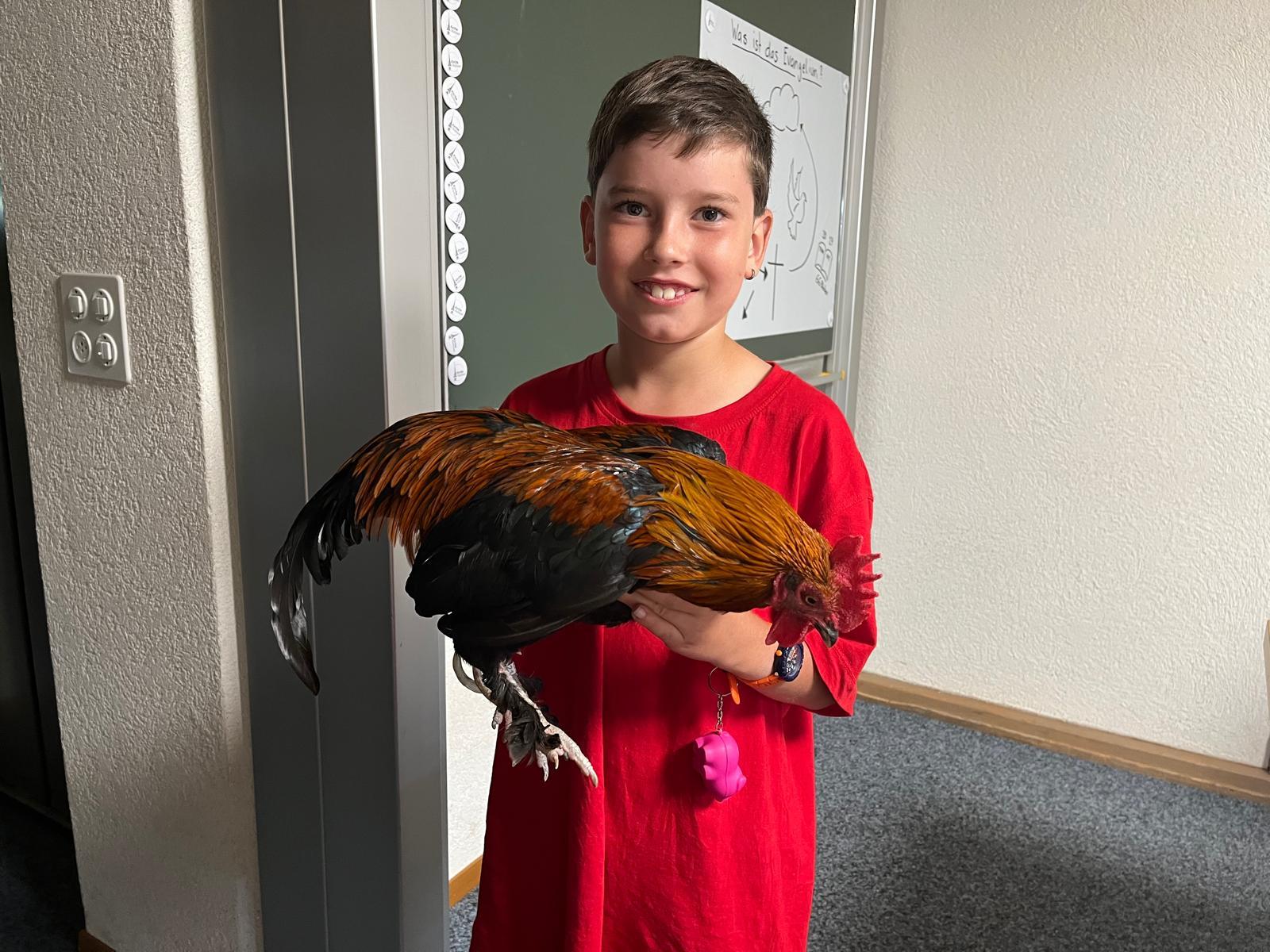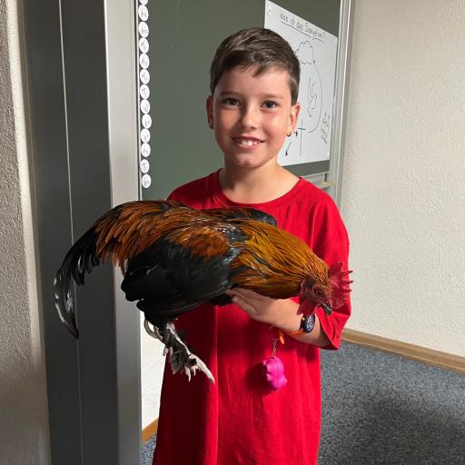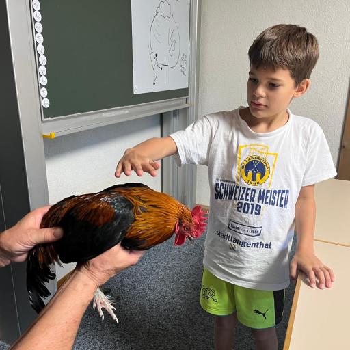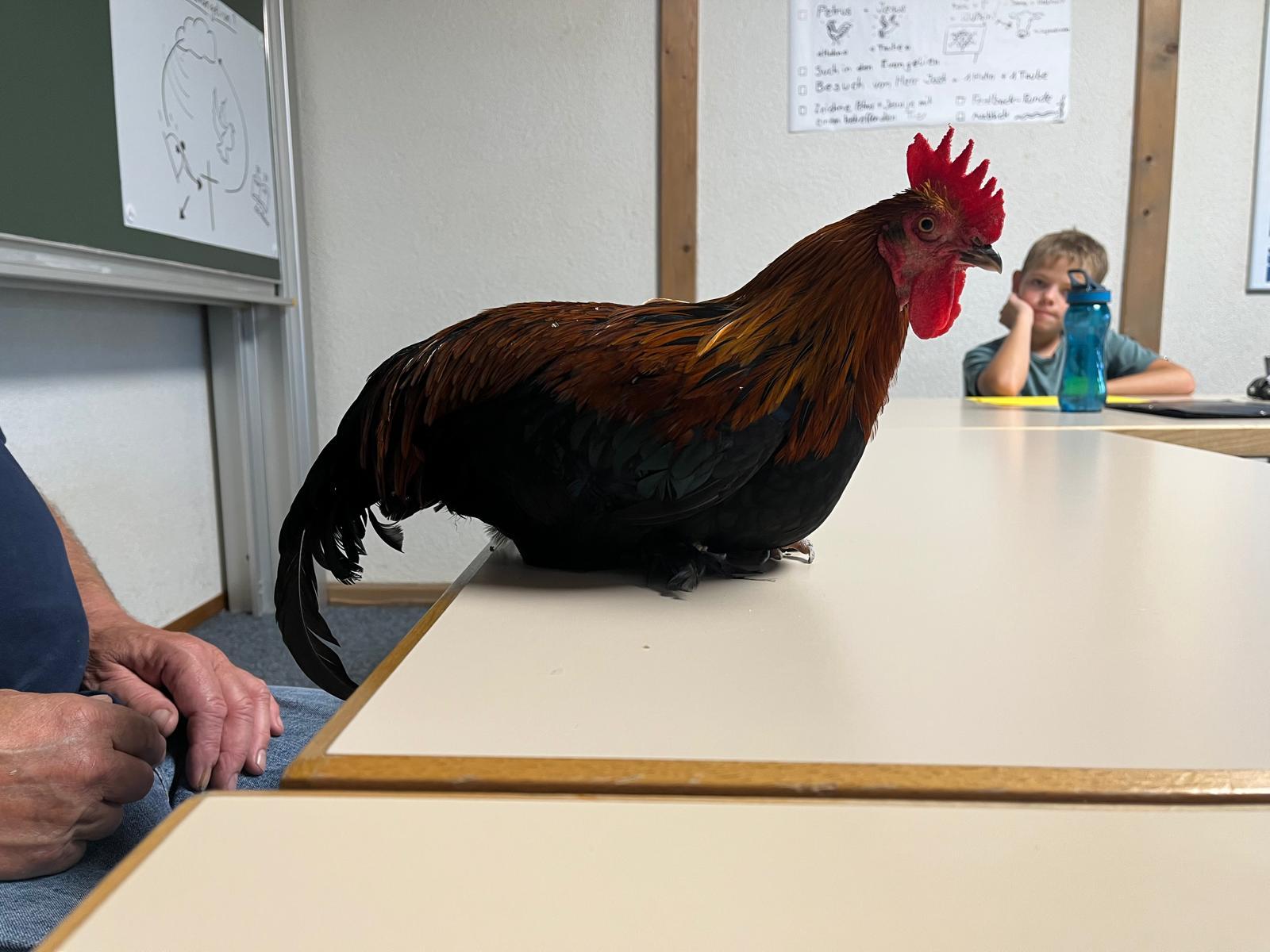 Heute durften wir in der KUW einen spannenden Besuch erleben: Herr Hansruedi Jost aus Madiswil kam zu uns und brachte drei Tiere mit, einen Maran-Hahn und zwei Brieftauben, ein Weibchen und ein Männchen. Herr Jost erzählte uns viel Interessantes über die Tiere. Die Brieftauben sind besonders treu: Ein Taubenpaar bleibt ein Leben lang zusammen. Sie finden ihren Weg nach Hause, ausser wenn es neblig ist. Der Hahn hingegen lebt mit mehreren Hennen und kann bis zu neun Jahre alt werden, eine Taube sogar zehn. Auch die Bibel erzählt von Hahn und Taube: Der Hahn erinnert uns an Petrus, der Jesus dreimal verleugnete, bevor der Hahn krähte. Das machte Petrus traurig, und er bereute es. Die Taube ist ein Zeichen für Frieden und Gottes Nähe. Als Jesus getauft wurde, kam der Heilige Geist wie eine Taube vom Himmel herab. Das zeigt: Gott ist bei uns und liebt uns. So haben uns Hahn und Taube heute nicht nur viel über Tiere gelehrt, sondern auch über Freundschaft, Vergebung und Gottes Liebe.