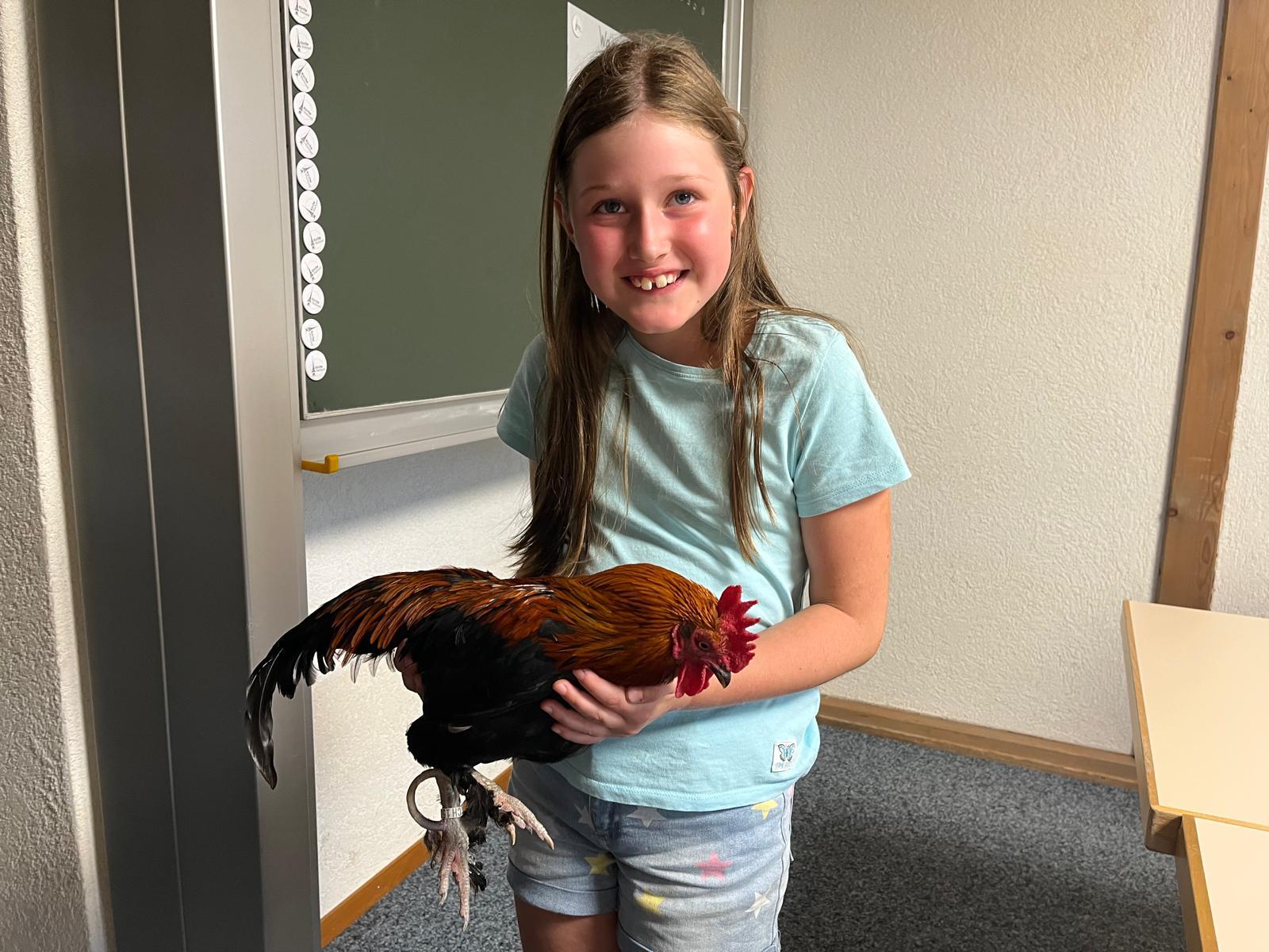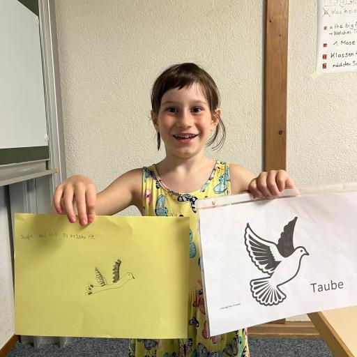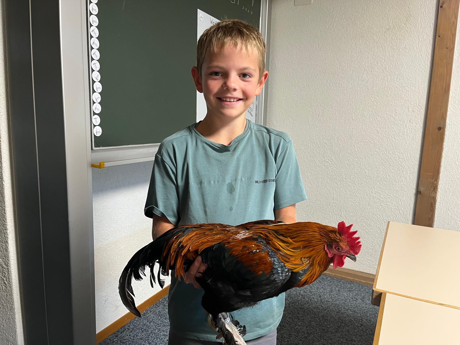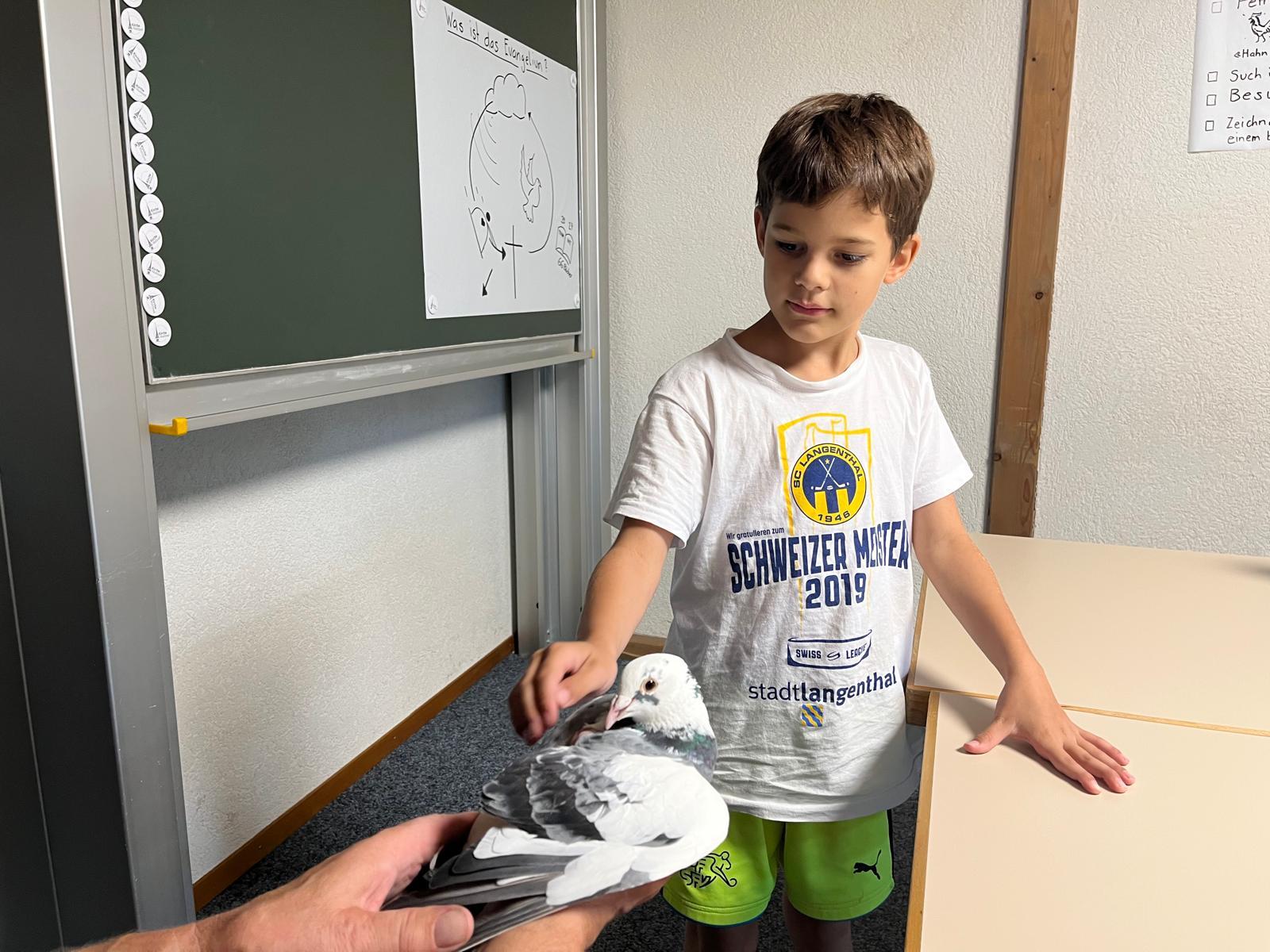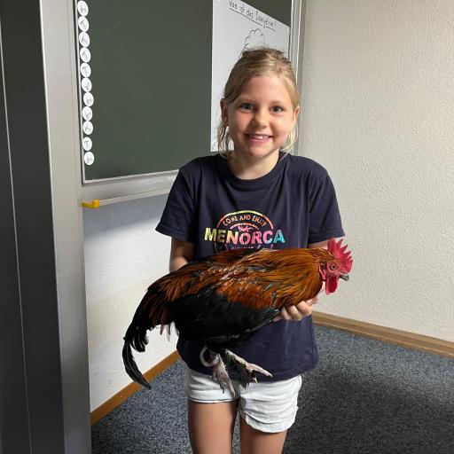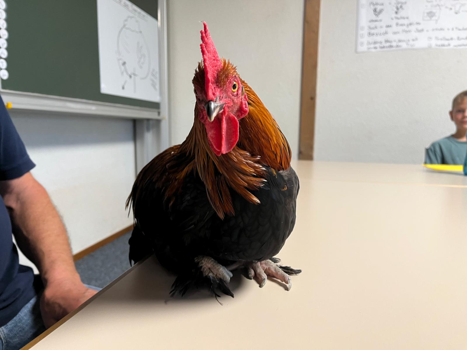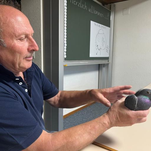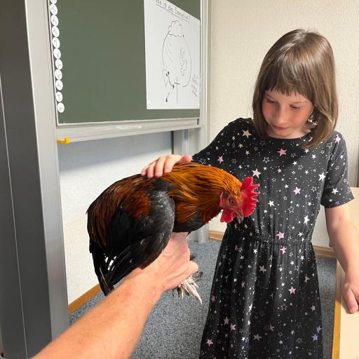 Heute durften wir in der KUW einen spannenden Besuch erleben: Herr Hansruedi Jost aus Madiswil kam zu uns und brachte drei Tiere mit, einen Maran-Hahn und zwei Brieftauben, ein Weibchen und ein Männchen. Herr Jost erzählte uns viel Interessantes über die Tiere. Die Brieftauben sind besonders treu: Ein Taubenpaar bleibt ein Leben lang zusammen. Sie finden ihren Weg nach Hause, ausser wenn es neblig ist. Der Hahn hingegen lebt mit mehreren Hennen und kann bis zu neun Jahre alt werden, eine Taube sogar zehn. Auch die Bibel erzählt von Hahn und Taube: Der Hahn erinnert uns an Petrus, der Jesus dreimal verleugnete, bevor der Hahn krähte. Das machte Petrus traurig, und er bereute es. Die Taube ist ein Zeichen für Frieden und Gottes Nähe. Als Jesus getauft wurde, kam der Heilige Geist wie eine Taube vom Himmel herab. Das zeigt: Gott ist bei uns und liebt uns. So haben uns Hahn und Taube heute nicht nur viel über Tiere gelehrt, sondern auch über Freundschaft, Vergebung und Gottes Liebe.