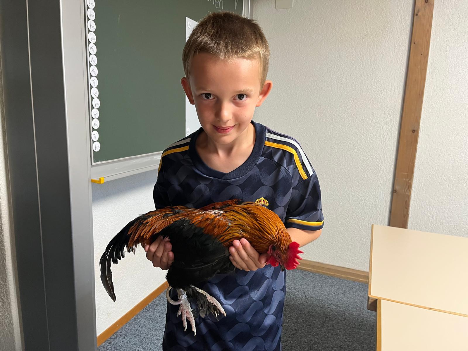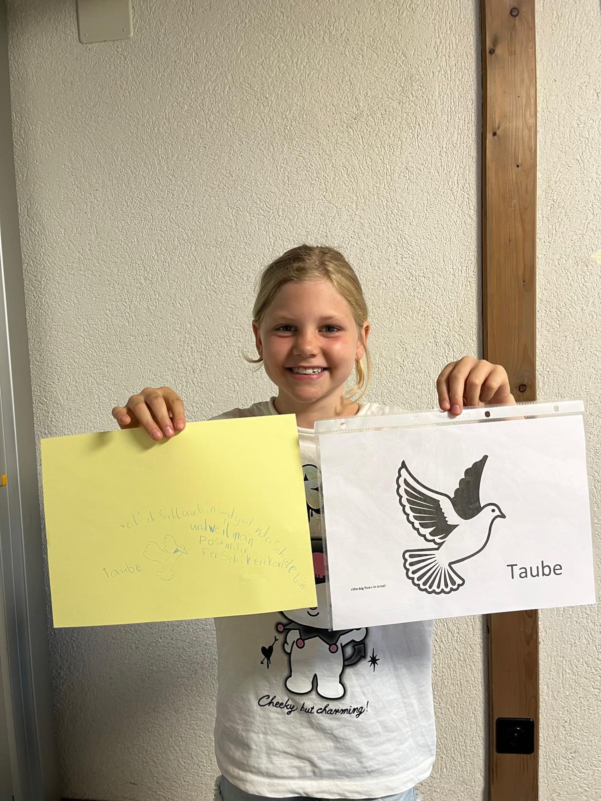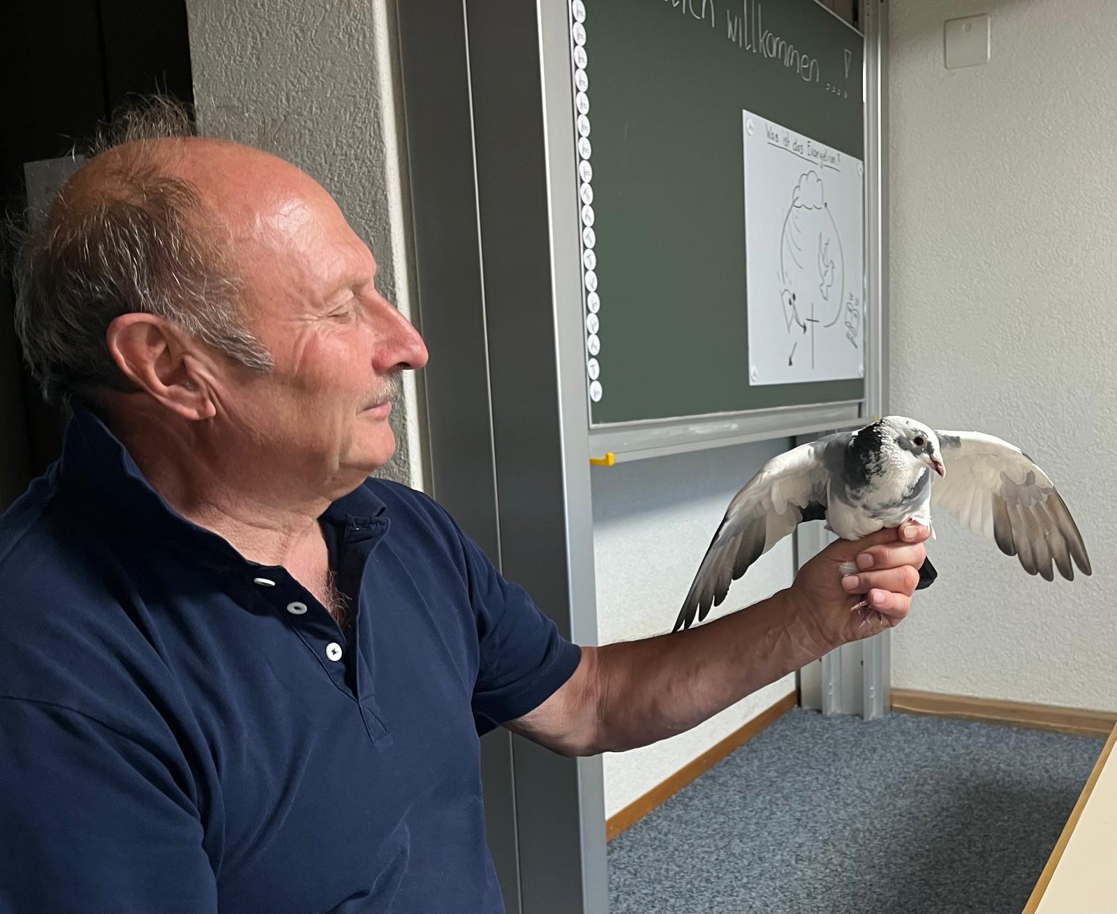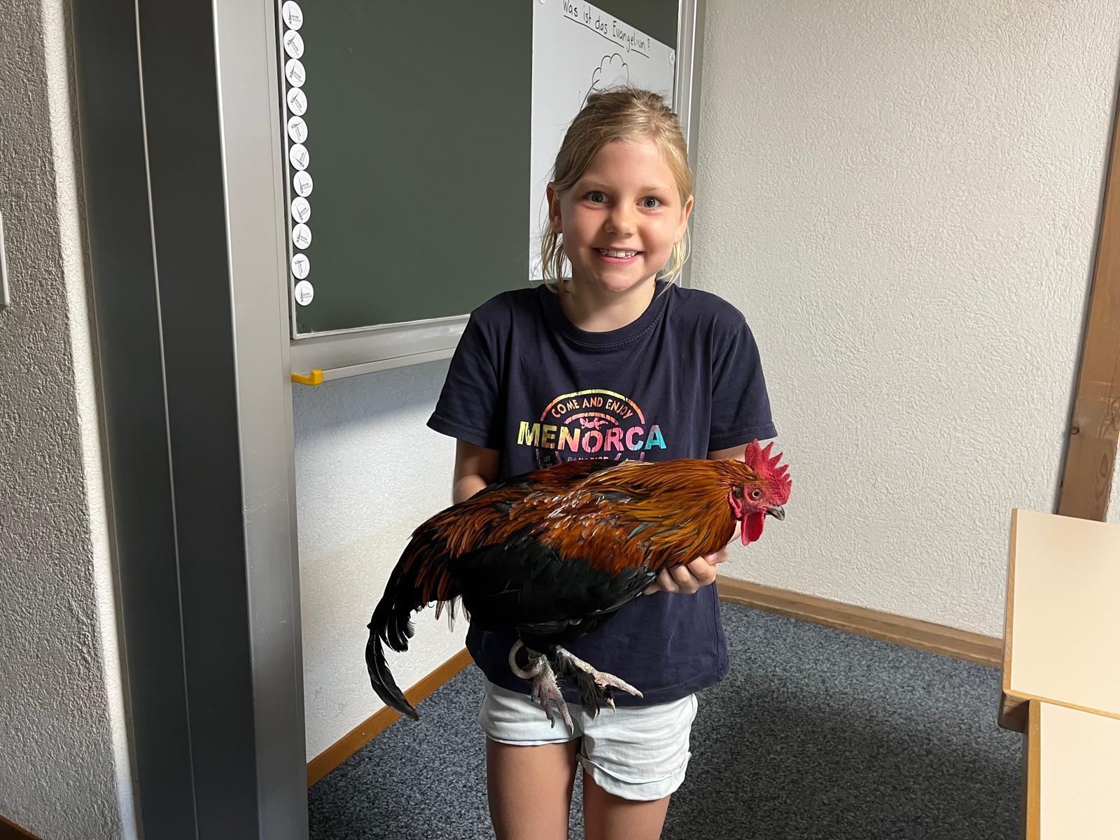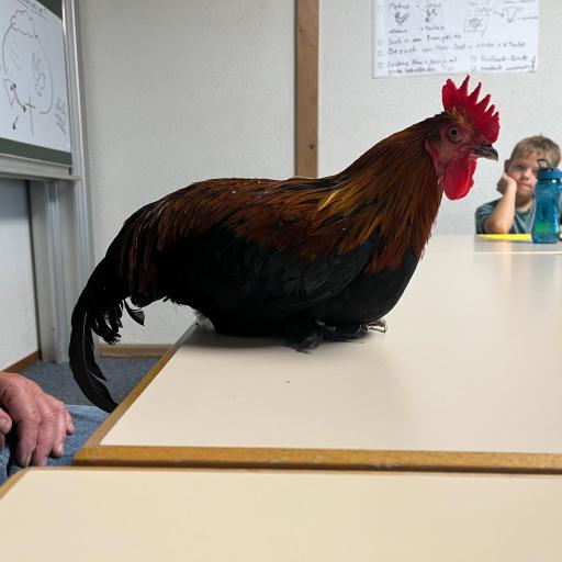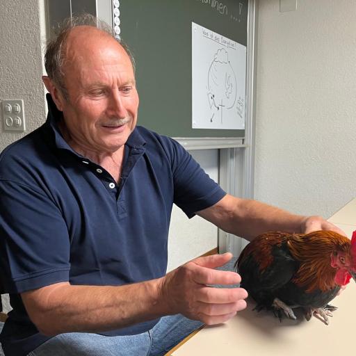 Heute durften wir in der KUW einen spannenden Besuch erleben: Herr Hansruedi Jost aus Madiswil kam zu uns und brachte drei Tiere mit, einen Maran-Hahn und zwei Brieftauben, ein Weibchen und ein Männchen. Herr Jost erzählte uns viel Interessantes über die Tiere. Die Brieftauben sind besonders treu: Ein Taubenpaar bleibt ein Leben lang zusammen. Sie finden ihren Weg nach Hause, ausser wenn es neblig ist. Der Hahn hingegen lebt mit mehreren Hennen und kann bis zu neun Jahre alt werden, eine Taube sogar zehn. Auch die Bibel erzählt von Hahn und Taube: Der Hahn erinnert uns an Petrus, der Jesus dreimal verleugnete, bevor der Hahn krähte. Das machte Petrus traurig, und er bereute es. Die Taube ist ein Zeichen für Frieden und Gottes Nähe. Als Jesus getauft wurde, kam der Heilige Geist wie eine Taube vom Himmel herab. Das zeigt: Gott ist bei uns und liebt uns. So haben uns Hahn und Taube heute nicht nur viel über Tiere gelehrt, sondern auch über Freundschaft, Vergebung und Gottes Liebe.