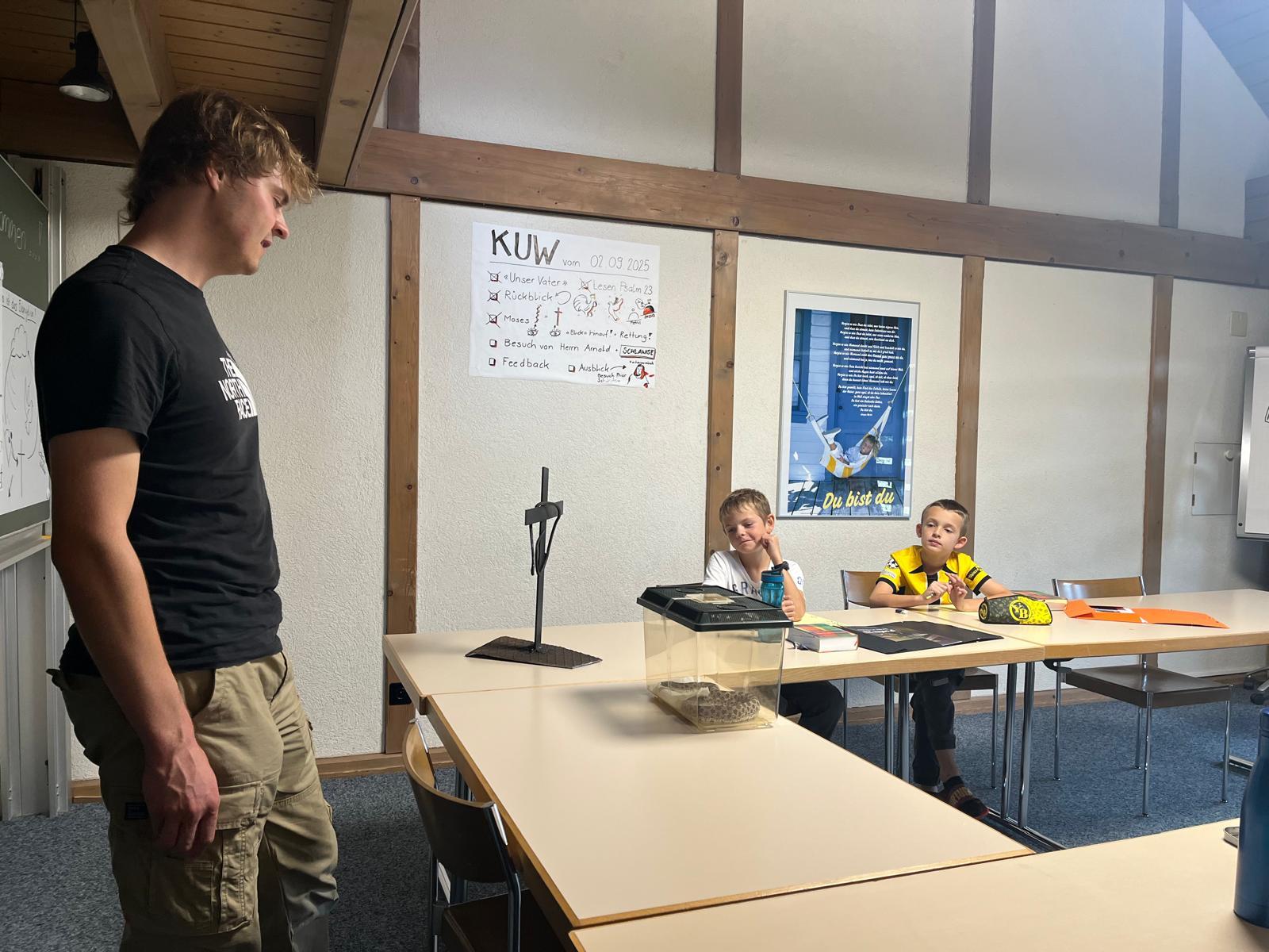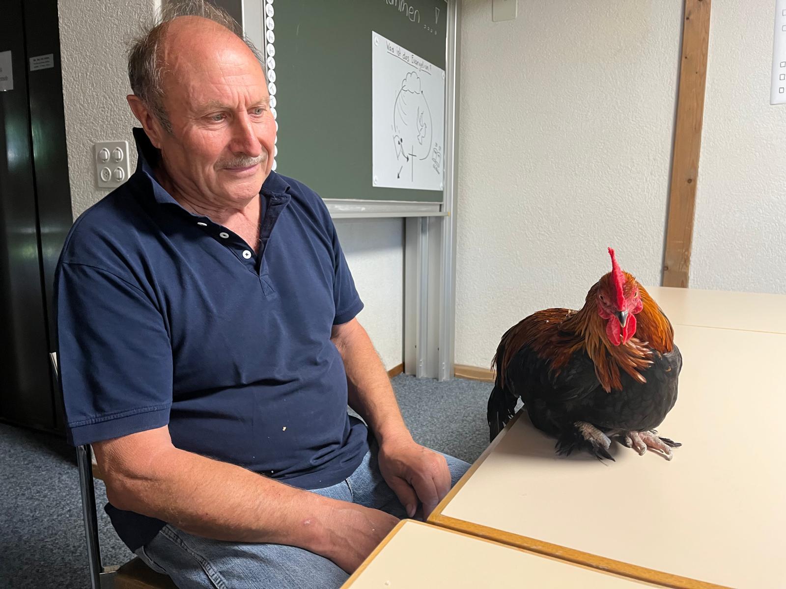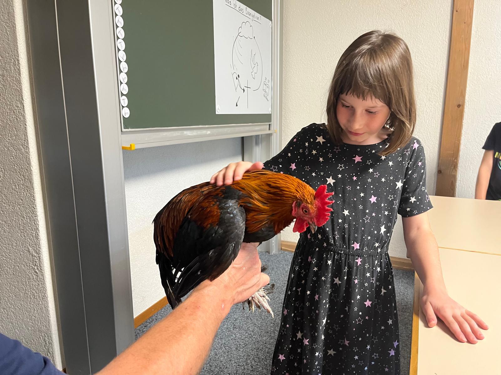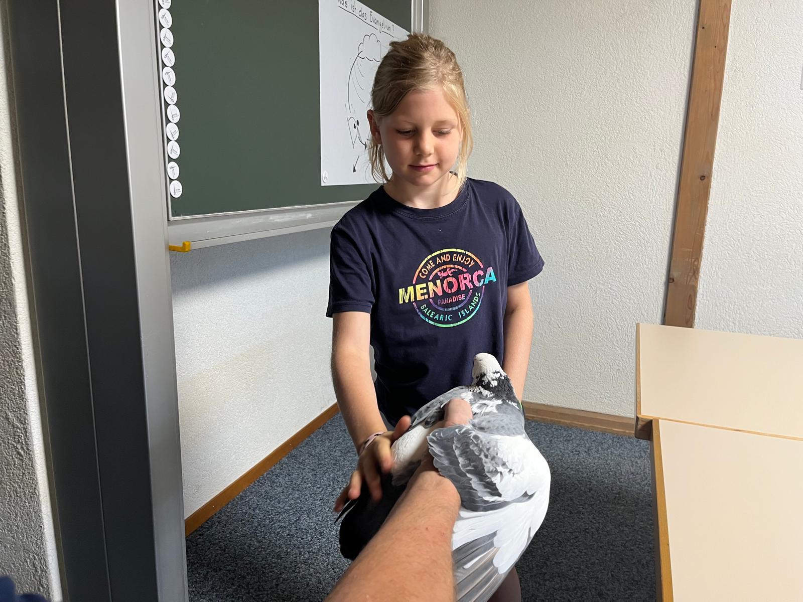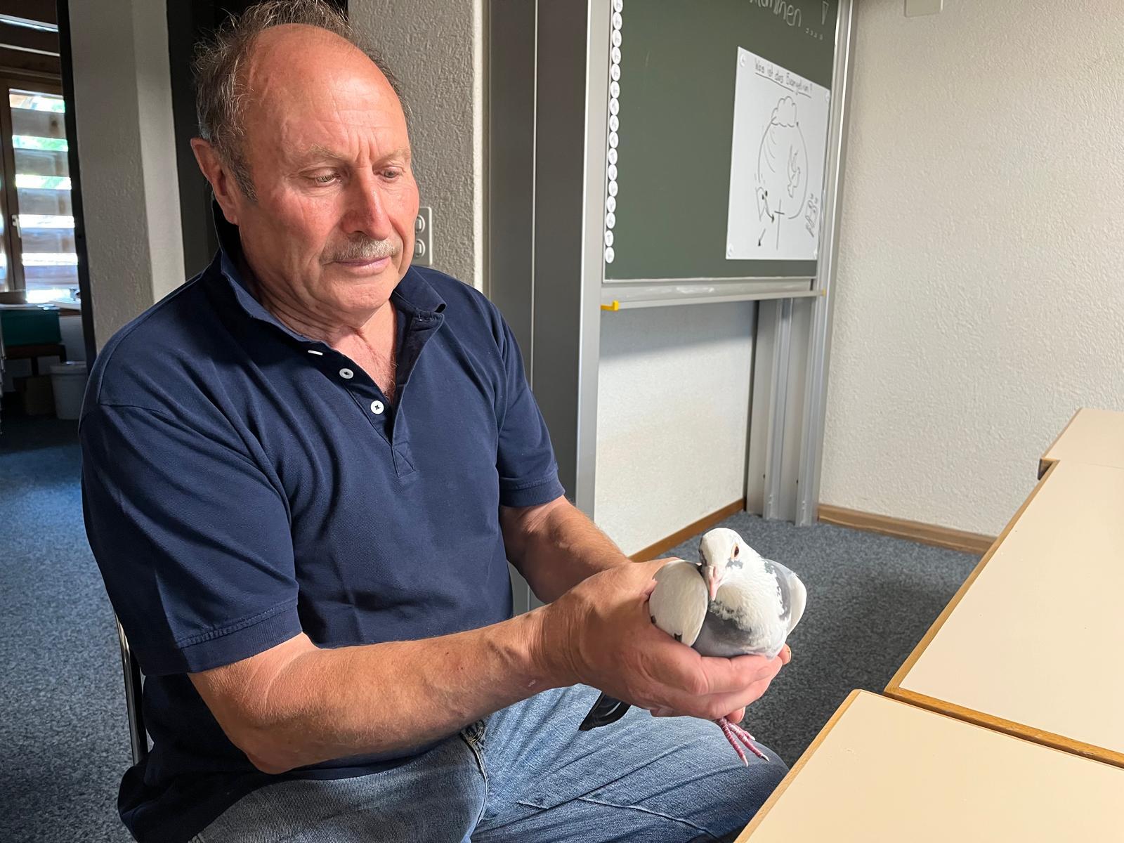 Heute durften wir in der KUW einen spannenden Besuch erleben: Herr Hansruedi Jost aus Madiswil kam zu uns und brachte drei Tiere mit, einen Maran-Hahn und zwei Brieftauben, ein Weibchen und ein Männchen. Herr Jost erzählte uns viel Interessantes über die Tiere. Die Brieftauben sind besonders treu: Ein Taubenpaar bleibt ein Leben lang zusammen. Sie finden ihren Weg nach Hause, ausser wenn es neblig ist. Der Hahn hingegen lebt mit mehreren Hennen und kann bis zu neun Jahre alt werden, eine Taube sogar zehn. Auch die Bibel erzählt von Hahn und Taube: Der Hahn erinnert uns an Petrus, der Jesus dreimal verleugnete, bevor der Hahn krähte. Das machte Petrus traurig, und er bereute es. Die Taube ist ein Zeichen für Frieden und Gottes Nähe. Als Jesus getauft wurde, kam der Heilige Geist wie eine Taube vom Himmel herab. Das zeigt: Gott ist bei uns und liebt uns. So haben uns Hahn und Taube heute nicht nur viel über Tiere gelehrt, sondern auch über Freundschaft, Vergebung und Gottes Liebe.