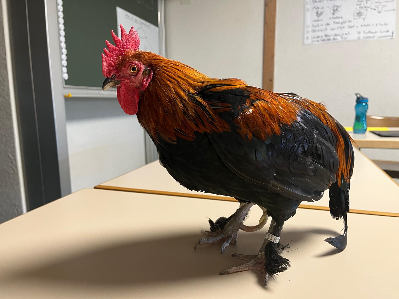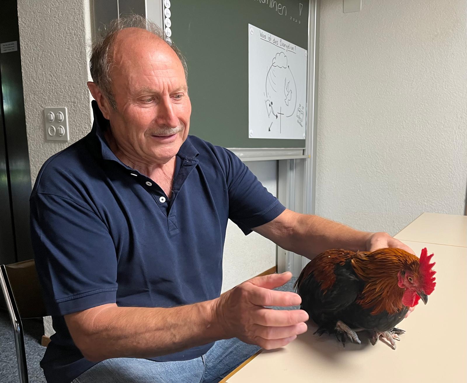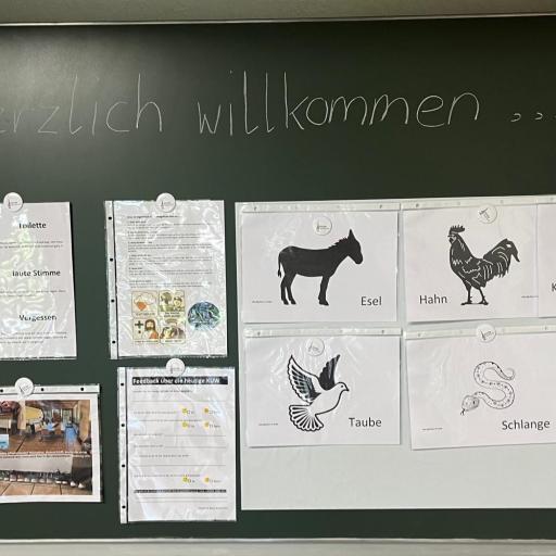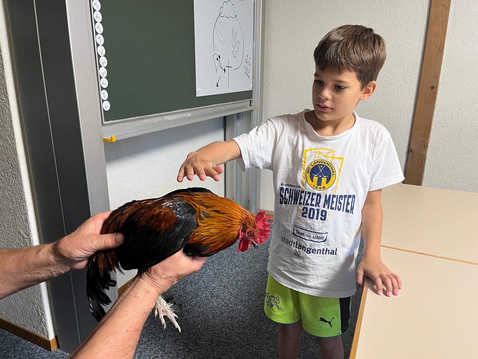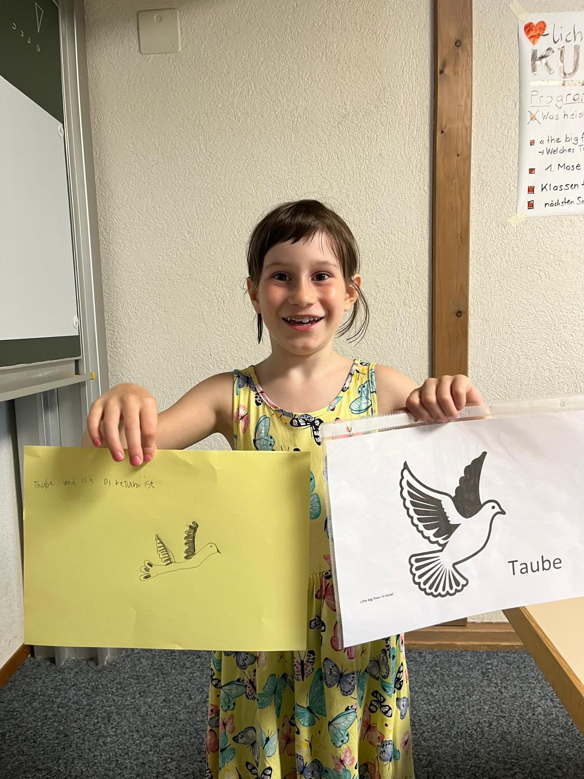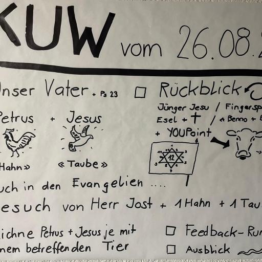 Heute durften wir in der KUW einen spannenden Besuch erleben: Herr Hansruedi Jost aus Madiswil kam zu uns und brachte drei Tiere mit, einen Maran-Hahn und zwei Brieftauben, ein Weibchen und ein Männchen. Herr Jost erzählte uns viel Interessantes über die Tiere. Die Brieftauben sind besonders treu: Ein Taubenpaar bleibt ein Leben lang zusammen. Sie finden ihren Weg nach Hause, ausser wenn es neblig ist. Der Hahn hingegen lebt mit mehreren Hennen und kann bis zu neun Jahre alt werden, eine Taube sogar zehn. Auch die Bibel erzählt von Hahn und Taube: Der Hahn erinnert uns an Petrus, der Jesus dreimal verleugnete, bevor der Hahn krähte. Das machte Petrus traurig, und er bereute es. Die Taube ist ein Zeichen für Frieden und Gottes Nähe. Als Jesus getauft wurde, kam der Heilige Geist wie eine Taube vom Himmel herab. Das zeigt: Gott ist bei uns und liebt uns. So haben uns Hahn und Taube heute nicht nur viel über Tiere gelehrt, sondern auch über Freundschaft, Vergebung und Gottes Liebe.