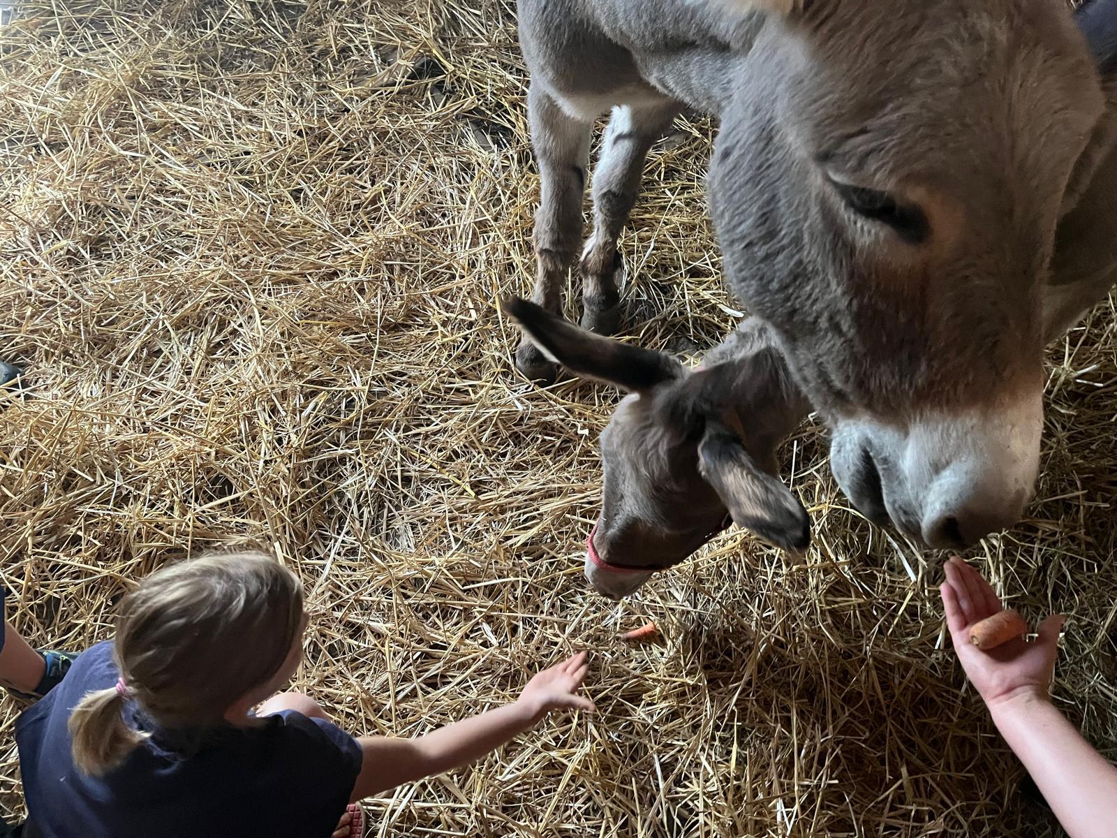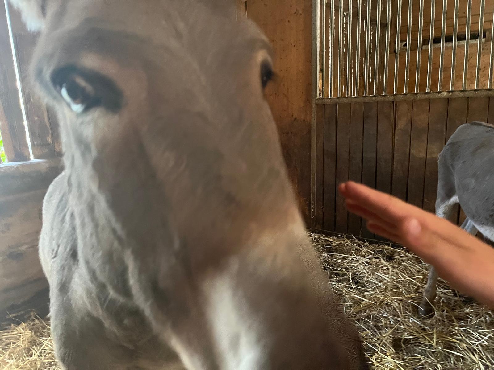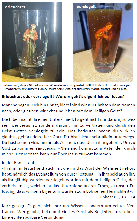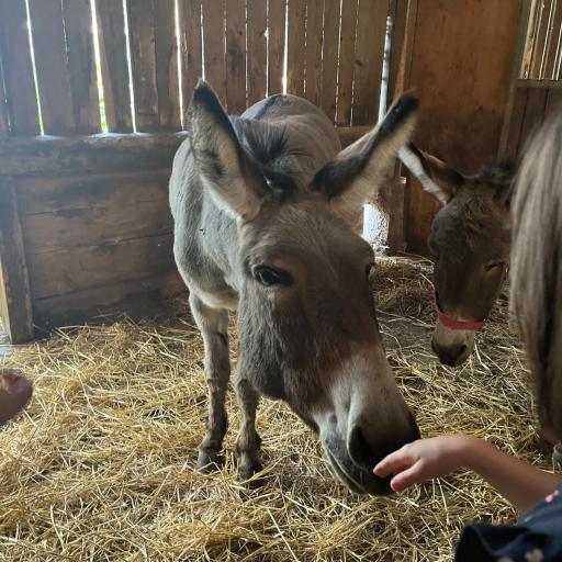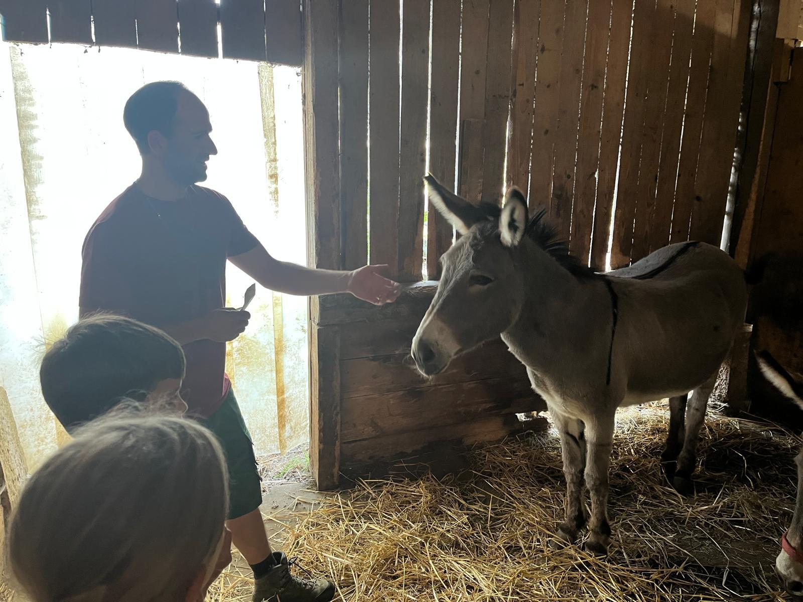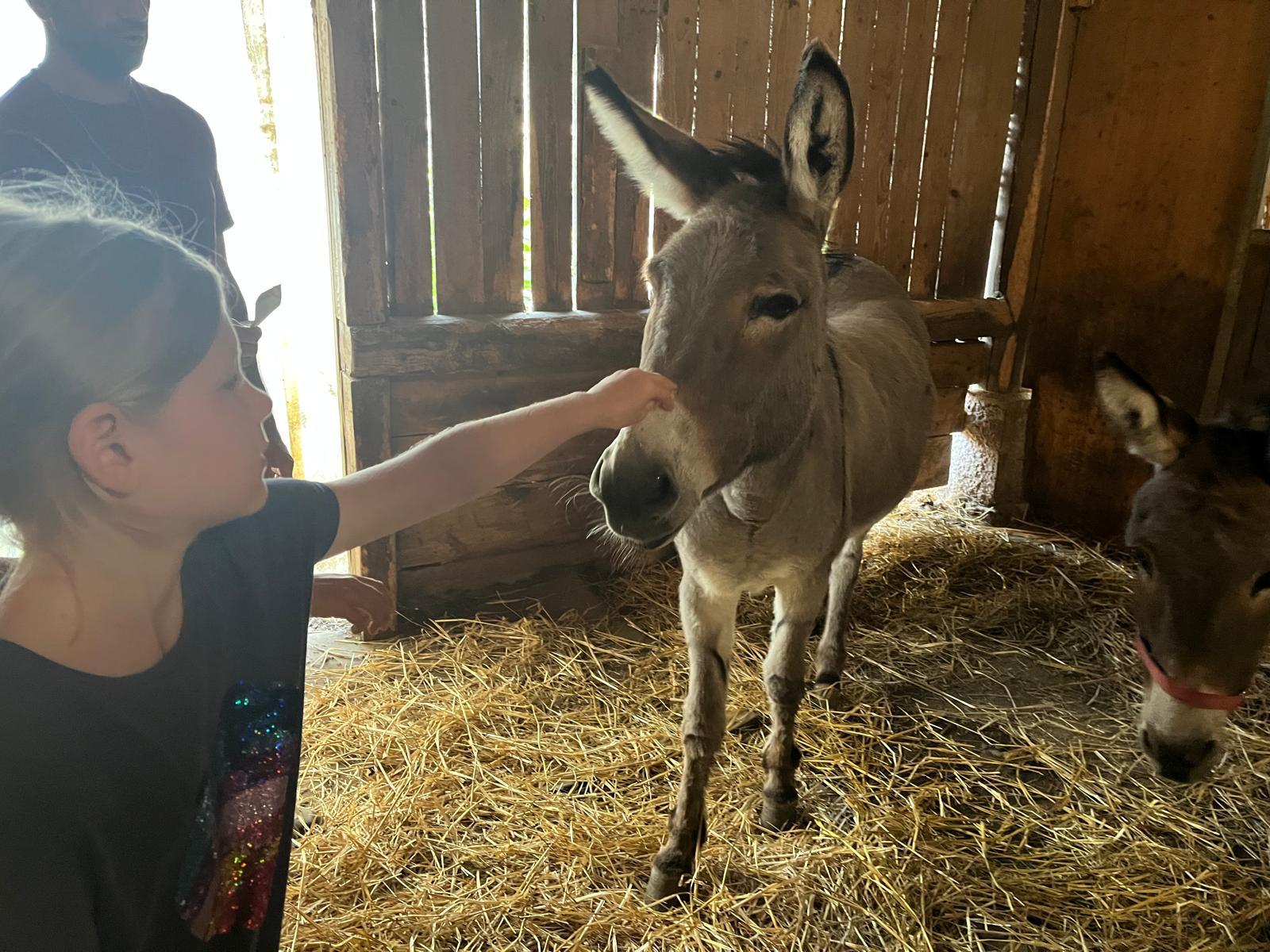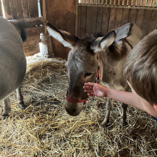 Heute haben wir gemeinsam einen spannenden KUW-Nachmittag erlebt. Wir starteten mit dem «Unser Vater»-Gebet und erinnerten uns an die Geschichte von letzten Sonntag im Gottesdienst vom Jünger Philippus. Er erklärte einem äthiopischen Beamten die Botschaft von Jesus und taufte ihn in einem Fluss. Der Mann fuhr danach voller Freude nach Hause. Wir sprachen über die fünf Tiere Israels, die Arche Noah und die Bibel mit ihren 66 Büchern, dem Tanach und dem Neuen Testament. Besonders spannend war das Kennenlernen der 12 Jünger Jesu. Wir hörten, wie Jesus auf einem Esel nach Jerusalem ritt. Passend dazu besuchten wir den Biohof von Niklaus und Barbara Badertscher. Dort durften wir die beiden Esel «Benno» und «Bellina» streicheln und füttern. Niklaus erzählte uns mit viel Wissen über diese besonderen Tiere. Beide tragen ein Kreuz auf dem Rücken. Ein Zeichen, das uns an Jesus erinnert. Wir sprachen auch darüber, wie Jesus am Kreuz gestorben ist, um uns mit Gott zu versöhnen und uns neues Leben zu schenken. Ein weiterer schöner Augenblick war das kleine Jerseykalb «YouPoint» begrüssen und streicheln zu dürfen. Es trägt den Namen unseres Jugendraums, den wir ab der 7. Klasse besuchen dürfen. Zum Abschluss auf dem Biohof wurden wir mit frischer Bio-Milch und Bio-Apfelsaft durch Barbara verwöhnt. Ein Genuss für alle Sinne! Zurück im Unterrichtszimmer rundeten wir den Tag mit dem Fingerspiel «Jesus kommt geritten» ab. So konnten wir die Erlebnisse spielerisch nachfühlen.