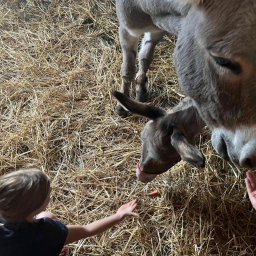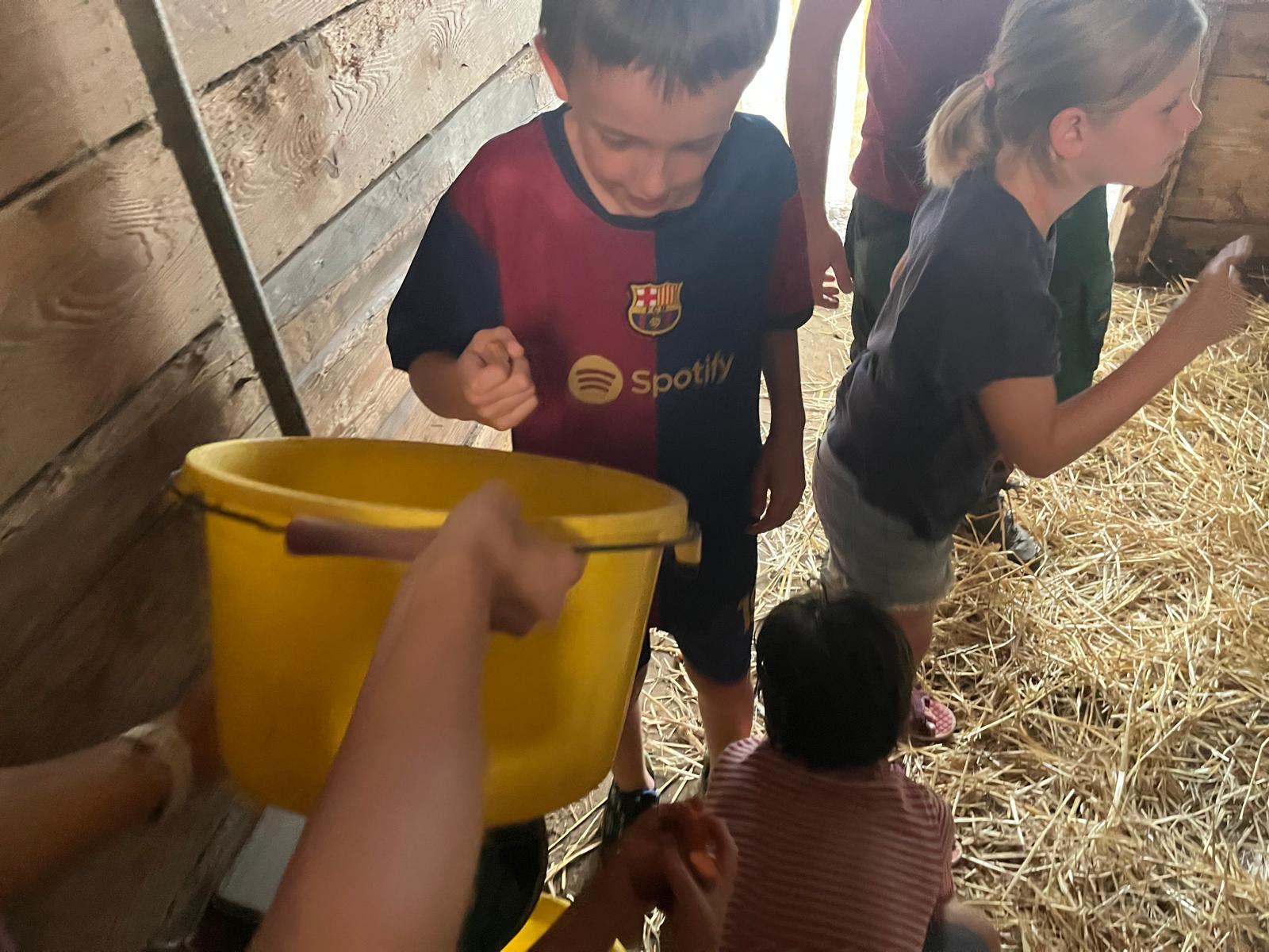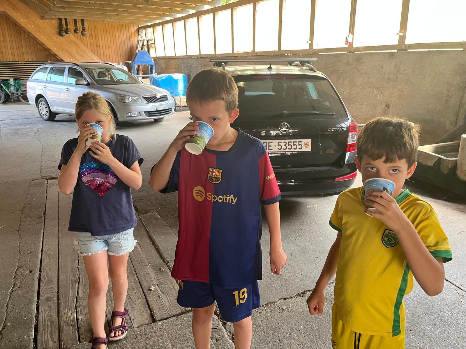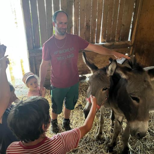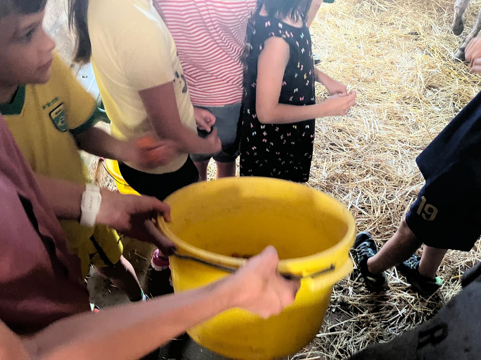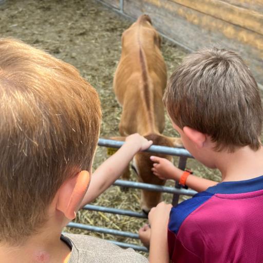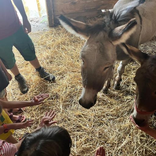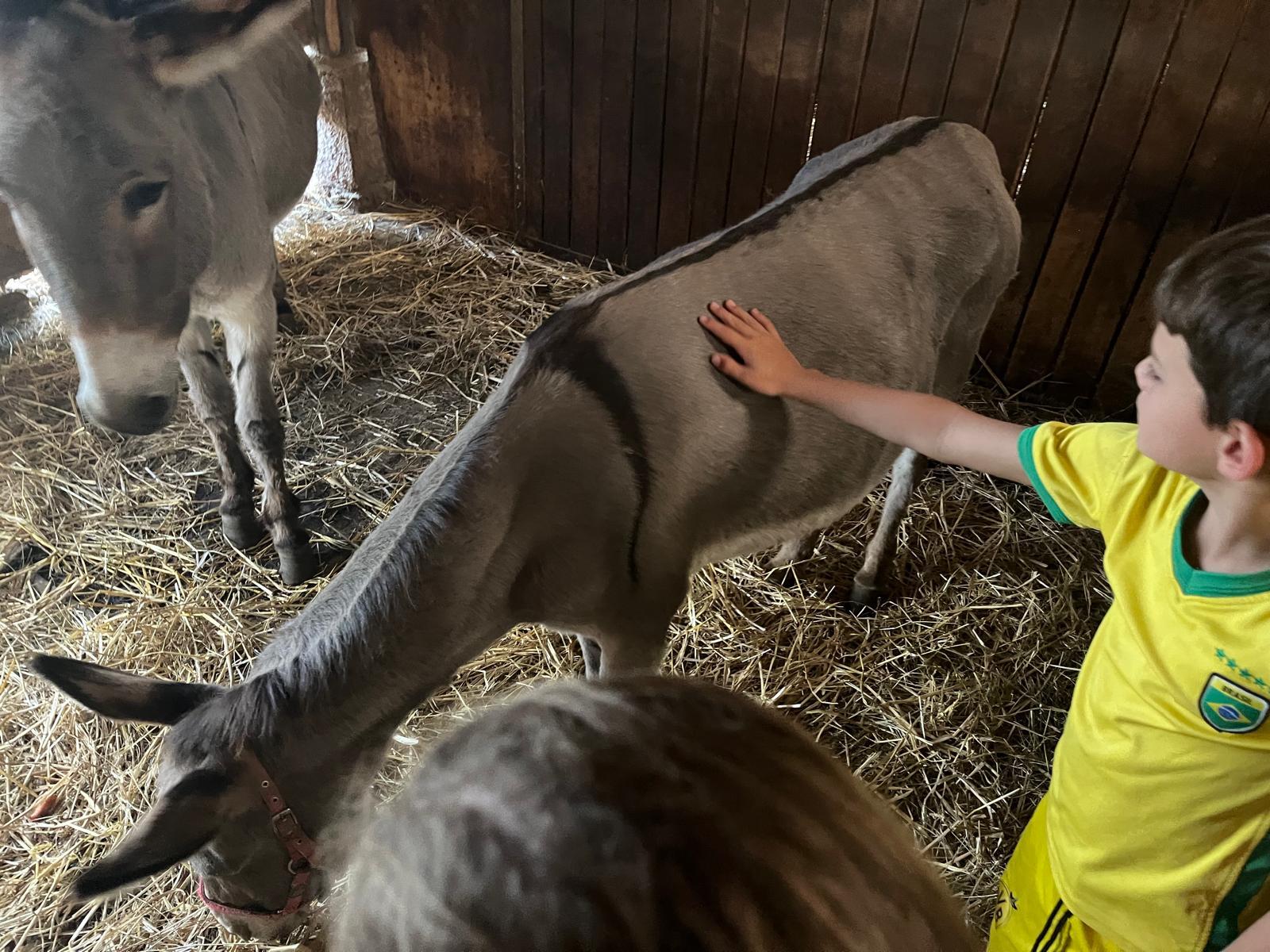 Heute haben wir gemeinsam einen spannenden KUW-Nachmittag erlebt. Wir starteten mit dem «Unser Vater»-Gebet und erinnerten uns an die Geschichte von letzten Sonntag im Gottesdienst vom Jünger Philippus. Er erklärte einem äthiopischen Beamten die Botschaft von Jesus und taufte ihn in einem Fluss. Der Mann fuhr danach voller Freude nach Hause. Wir sprachen über die fünf Tiere Israels, die Arche Noah und die Bibel mit ihren 66 Büchern, dem Tanach und dem Neuen Testament. Besonders spannend war das Kennenlernen der 12 Jünger Jesu. Wir hörten, wie Jesus auf einem Esel nach Jerusalem ritt. Passend dazu besuchten wir den Biohof von Niklaus und Barbara Badertscher. Dort durften wir die beiden Esel «Benno» und «Bellina» streicheln und füttern. Niklaus erzählte uns mit viel Wissen über diese besonderen Tiere. Beide tragen ein Kreuz auf dem Rücken. Ein Zeichen, das uns an Jesus erinnert. Wir sprachen auch darüber, wie Jesus am Kreuz gestorben ist, um uns mit Gott zu versöhnen und uns neues Leben zu schenken. Ein weiterer schöner Augenblick war das kleine Jerseykalb «YouPoint» begrüssen und streicheln zu dürfen. Es trägt den Namen unseres Jugendraums, den wir ab der 7. Klasse besuchen dürfen. Zum Abschluss auf dem Biohof wurden wir mit frischer Bio-Milch und Bio-Apfelsaft durch Barbara verwöhnt. Ein Genuss für alle Sinne! Zurück im Unterrichtszimmer rundeten wir den Tag mit dem Fingerspiel «Jesus kommt geritten» ab. So konnten wir die Erlebnisse spielerisch nachfühlen.