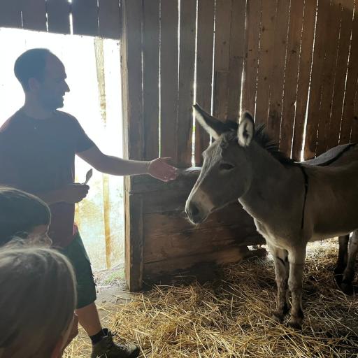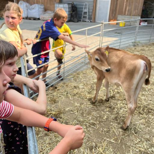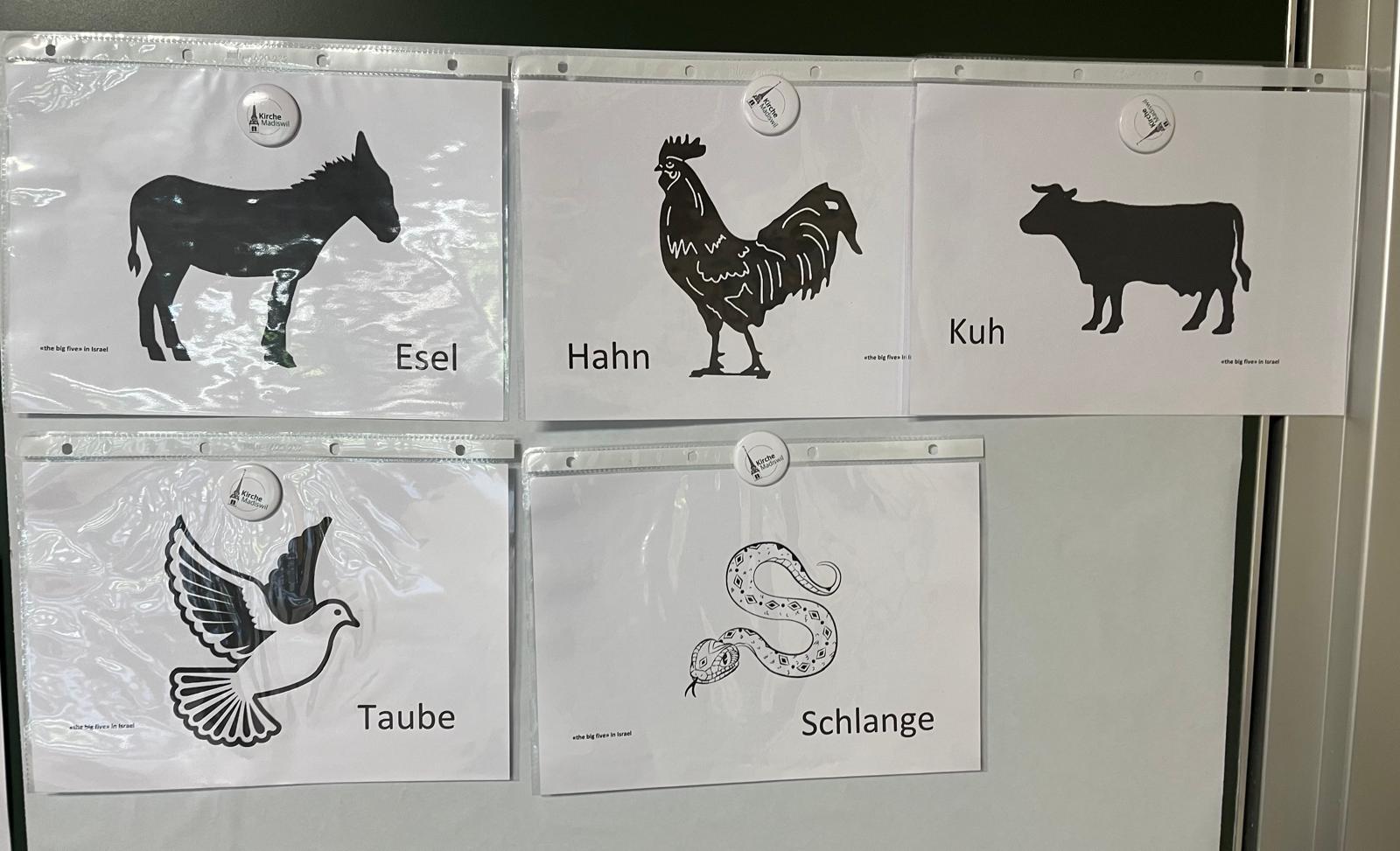Die Begegnung mit biblischen Tieren: einem Hahn, zwei Tauben, einer Schlange, zwei Eseln und unserem YouPoint Jerseykalb. Wir haben gelernt, warum diese Tiere in der Bibel vorkommen und was sie bedeuten.