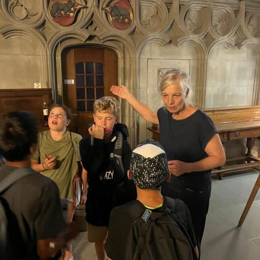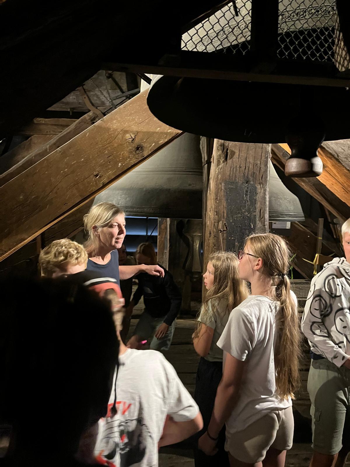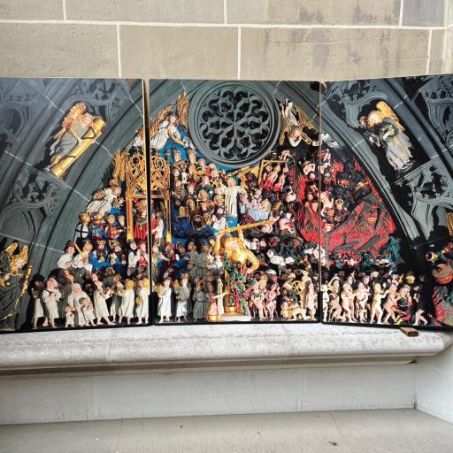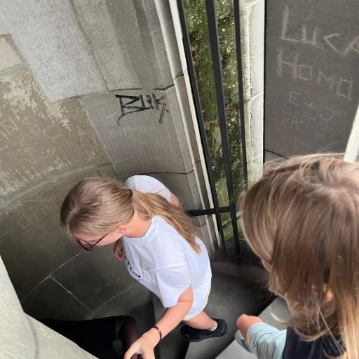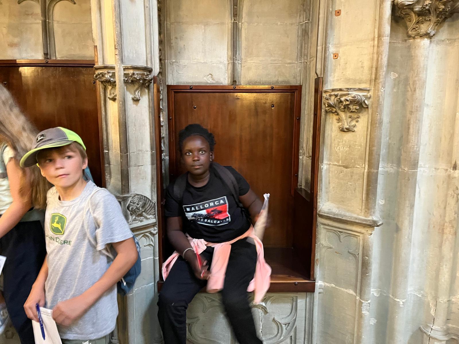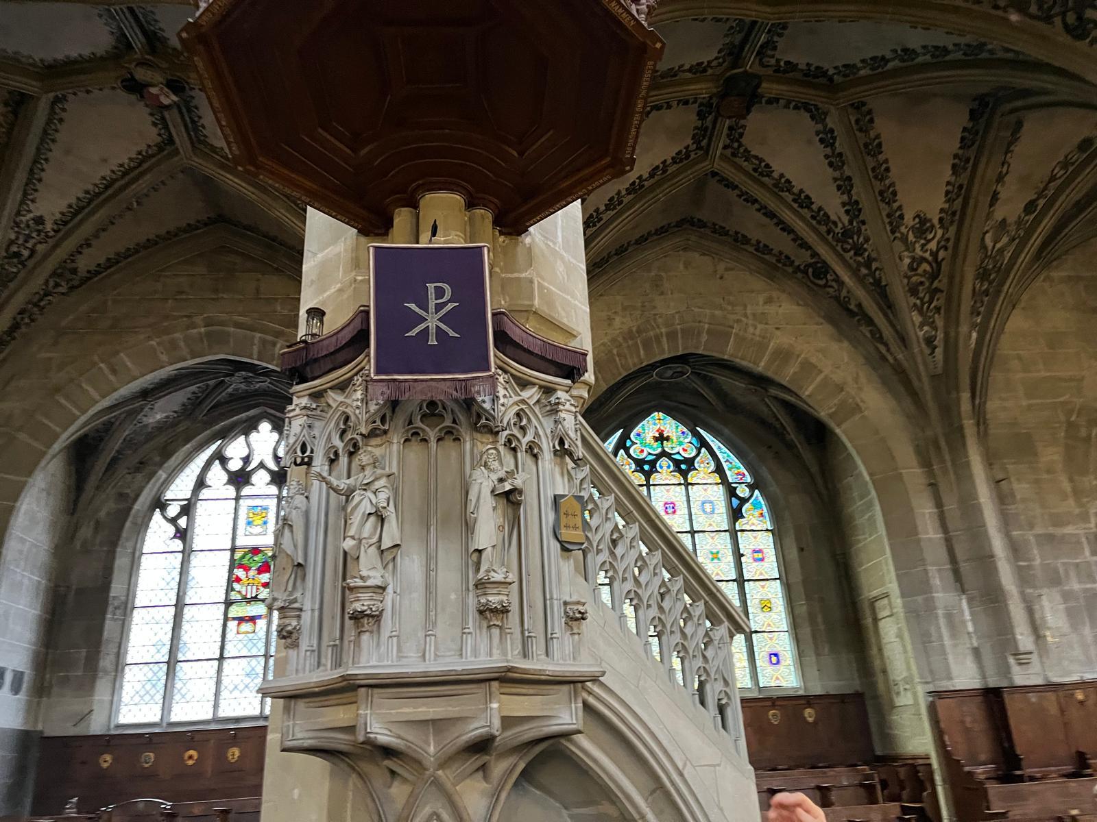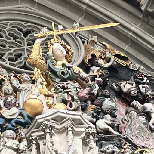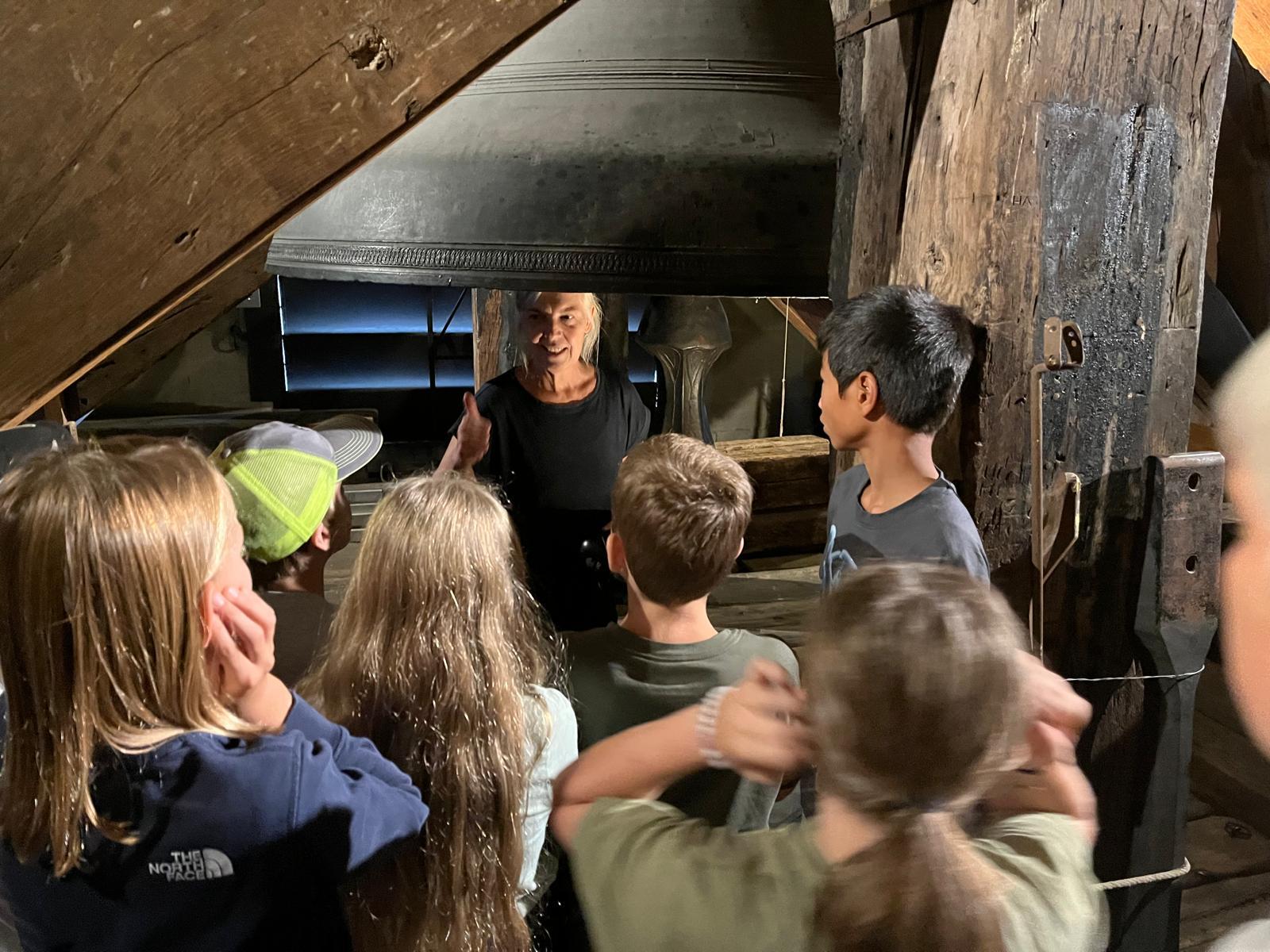 Heute besuchten wir das Berner Münster, eine riesige und sehr alte Kirche mitten in Bern. Sie ist über 600 Jahre alt und ganz schön beeindruckend! Unsere Führerin, Frau Kels, zeigte uns vieles und erzählte spannende Geschichten über die Reformationszeit vor rund 500 Jahren. Früher war das Münster katholisch. Die Menschen beteten zu Heiligen. Das sind besondere Personen, die Gott sehr nahe stehen. Im Münster gab es viele bunte Bilder und Statuen. Doch bei der Reformation änderte sich vieles: Die Leute wollten nun direkt zu Gott beten, ohne Heilige oder Bilder, und auch selbst die Bibel lesen. Musik und Kunst galten als Ablenkung. Deshalb wurden viele Figuren entfernt und auf die Münsterplattform geworfen. Nur das grosse Kunstwerk «Das Jüngste Gericht» blieb erhalten. Es zeigt über 180 Figuren: Gute Menschen kommen in den Himmel, böse in die Hölle. Warum gerade dieses Kunstwerk nicht zerstört wurde, weiss niemand genau. Die letzte katholische Messe fand bei der Metzgerzunft statt. Das war eine Gruppe von Berner Fleischern. Wir sahen die Schwalbenorgel, die hoch oben hängt wie ein Vogel. Die alte Orgel wurde ins Wallis gebracht. Früher war Musik verboten, aber heute darf man wieder Orgel spielen. Wir stiegen viele, viele Treppen hoch zur Glockenstube und zur ersten Aussichtsplattform. In der Glockenstube hängen riesige Glocken. Von oben hatten wir eine tolle Aussicht über Bern. Die Stadt sah aus wie ein Spielzeugland! Wir sahen Moses auf dem Mosesbrunnen auf dem Münsterplatz mit den Zehn Geboten (auch «Zehn Worte» genannt) auf zwei Steintafeln. Sein Gesicht glänzt, weil er mit Gott gesprochen hat. Deshalb hat man ihm zwei kleine Hörner auf den Kopf gesetzt und das war früher ein Zeichen für göttlichen Abglanz. Anschliessend fuhren wir vor das Gefängnis für Männer auf den Thorberg zur JVA (Justizvollzugsanstalt) Thorberg. Dort steht noch heute das «Glauser-Hüsi», ein kleines Häuschen aus der Zeit des Kartäuserklosters. Es wurde von Kartäusermönchen gebaut und gehörte zur Klosteranlage. Prior und Kartäusermönch Niclaus Schürstein lebte dort. Während der Reformation verliess er den Orden und wurde später ein reformierter Pfarrer. Ein besonders lustiger Moment war, als wir chinesische Touristen trafen. Sie waren sehr freundlich, und wir begrüssten sie mit einem fröhlichen «Nǐ hǎo», das heisst «Guten Tag» auf Chinesisch.