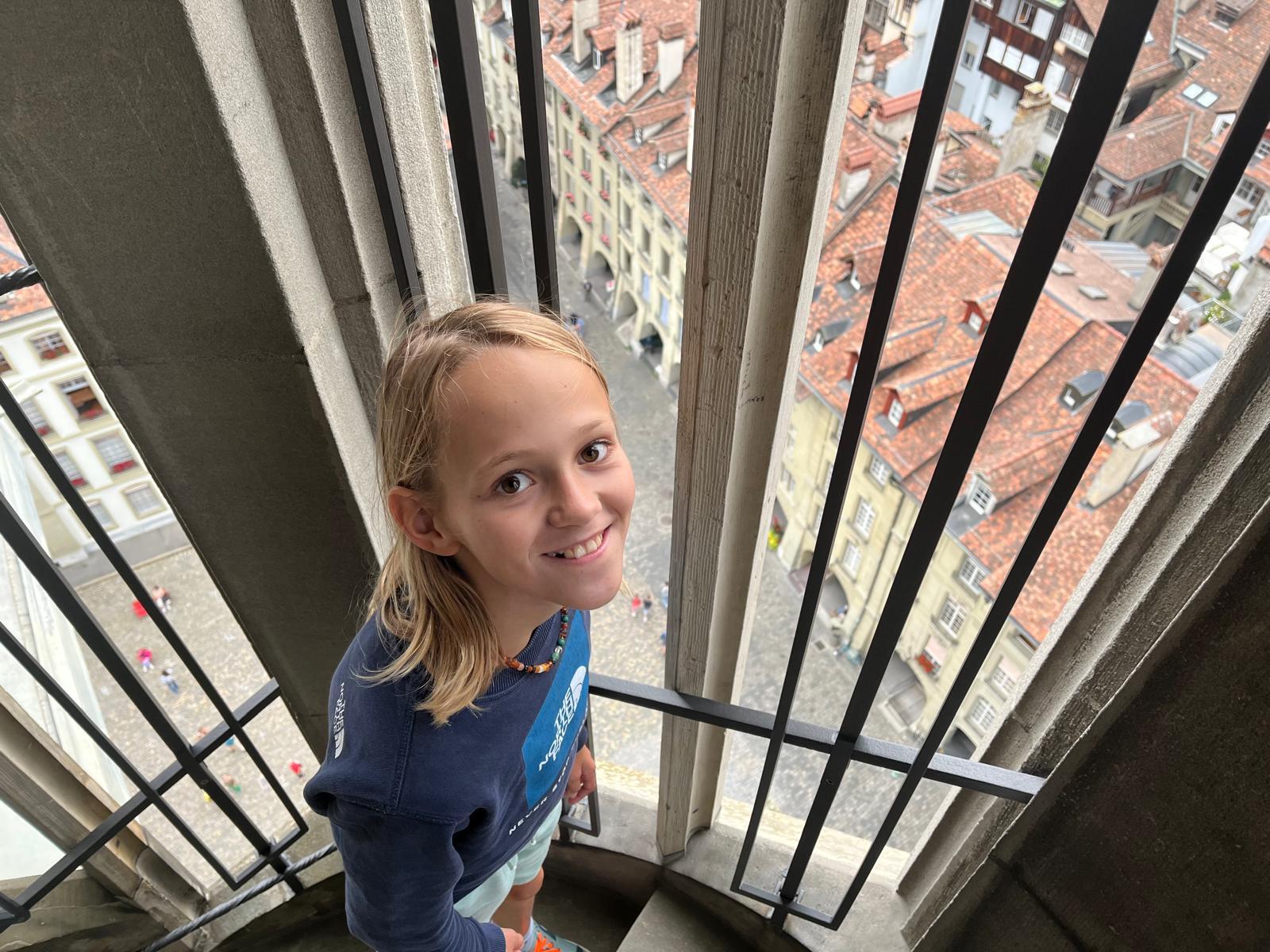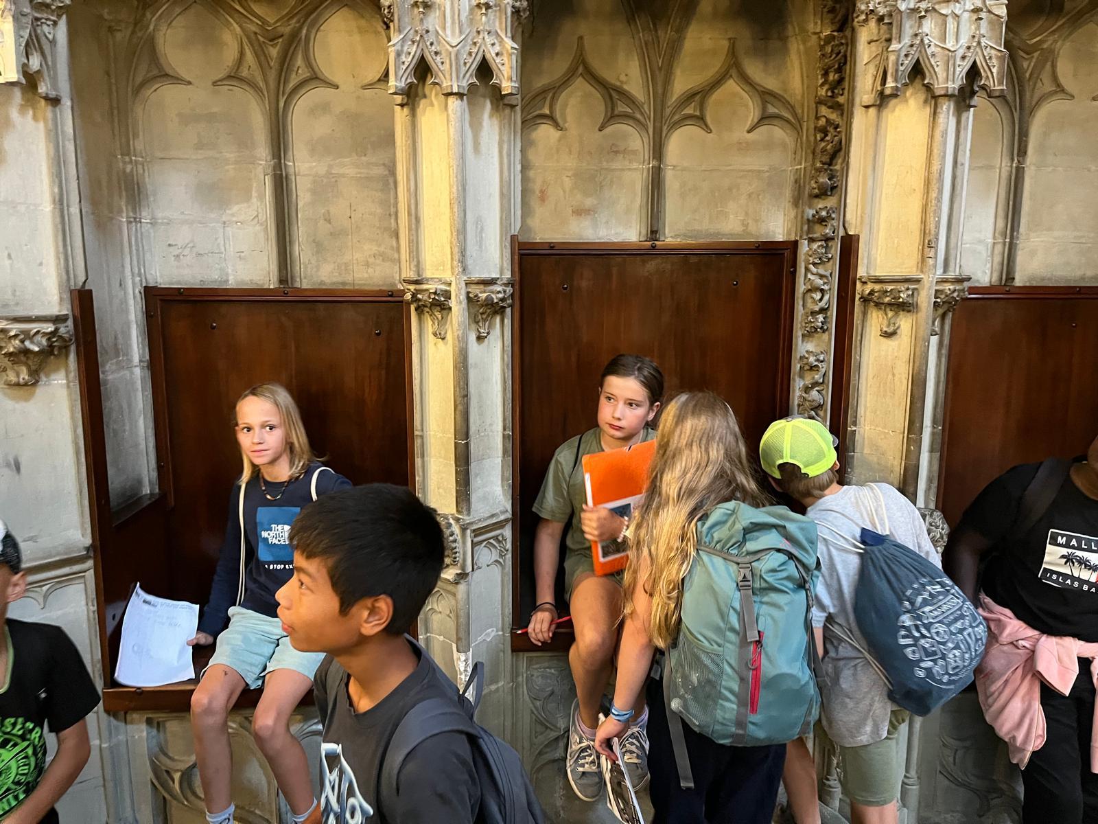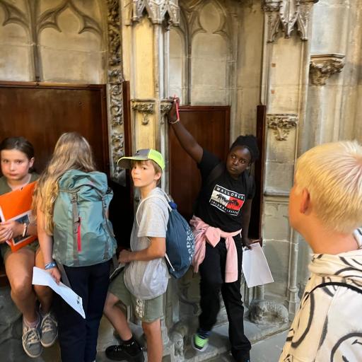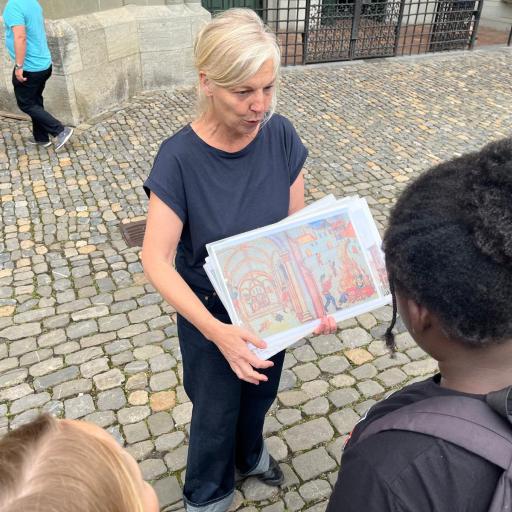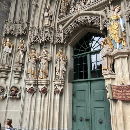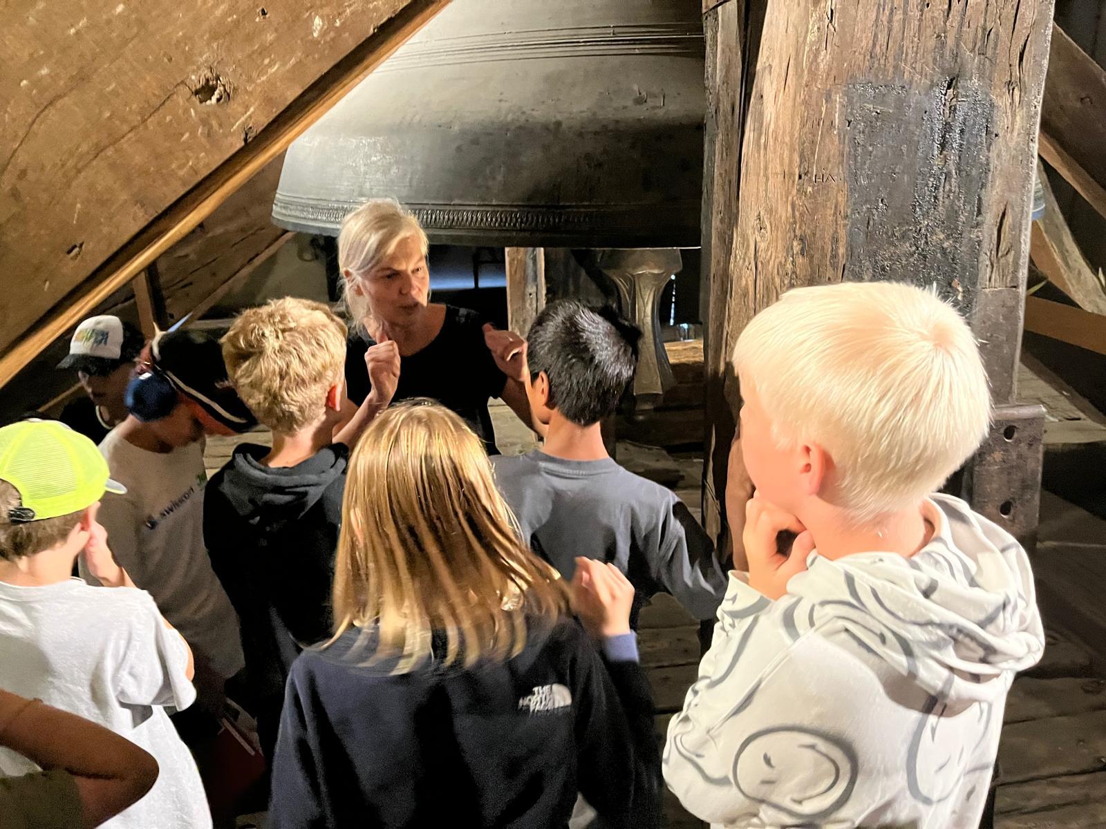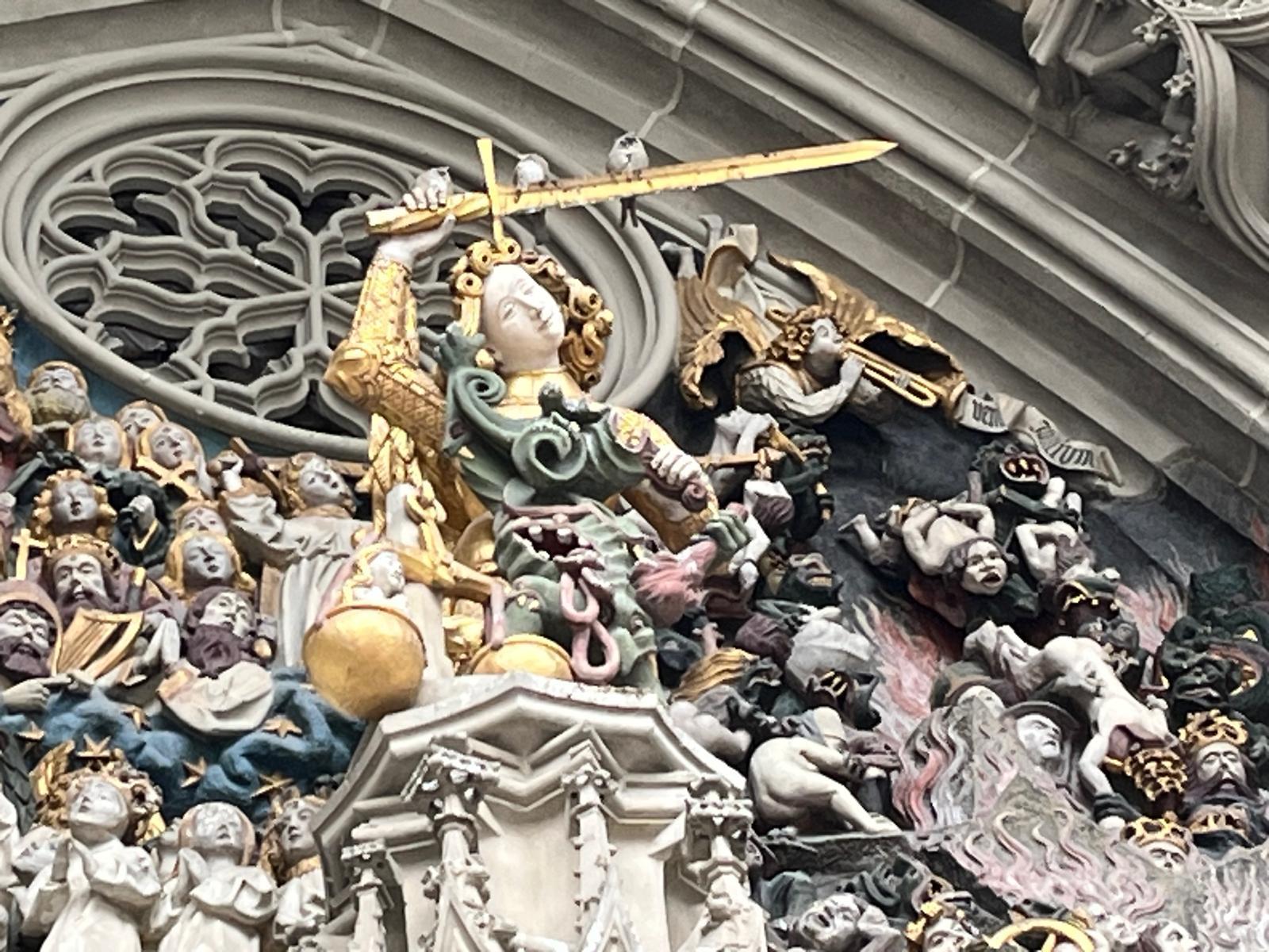Heute besuchten wir das Berner Münster, eine riesige und sehr alte Kirche mitten in Bern. Sie ist über 600 Jahre alt und ganz schön beeindruckend! Unsere Führerin, Frau Kels, zeigte uns vieles und erzählte spannende Geschichten über die Reformationszeit vor rund 500 Jahren. Früher war das Münster katholisch. Die Menschen beteten zu Heiligen. Das sind besondere Personen, die Gott sehr nahe stehen. Im Münster gab es viele bunte Bilder und Statuen. Doch bei der Reformation änderte sich vieles: Die Leute wollten nun direkt zu Gott beten, ohne Heilige oder Bilder, und auch selbst die Bibel lesen. Musik und Kunst galten als Ablenkung. Deshalb wurden viele Figuren entfernt und auf die Münsterplattform geworfen. Nur das grosse Kunstwerk «Das Jüngste Gericht» blieb erhalten. Es zeigt über 180 Figuren: Gute Menschen kommen in den Himmel, böse in die Hölle. Warum gerade dieses Kunstwerk nicht zerstört wurde, weiss niemand genau. Die letzte katholische Messe fand bei der Metzgerzunft statt. Das war eine Gruppe von Berner Fleischern. Wir sahen die Schwalbenorgel, die hoch oben hängt wie ein Vogel. Die alte Orgel wurde ins Wallis gebracht. Früher war Musik verboten, aber heute darf man wieder Orgel spielen. Wir stiegen viele, viele Treppen hoch zur Glockenstube und zur ersten Aussichtsplattform. In der Glockenstube hängen riesige Glocken. Von oben hatten wir eine tolle Aussicht über Bern. Die Stadt sah aus wie ein Spielzeugland! Wir sahen Moses auf dem Mosesbrunnen auf dem Münsterplatz mit den Zehn Geboten (auch «Zehn Worte» genannt) auf zwei Steintafeln. Sein Gesicht glänzt, weil er mit Gott gesprochen hat. Deshalb hat man ihm zwei kleine Hörner auf den Kopf gesetzt und das war früher ein Zeichen für göttlichen Abglanz. Anschliessend fuhren wir vor das Gefängnis für Männer auf den Thorberg zur JVA (Justizvollzugsanstalt) Thorberg. Dort steht noch heute das «Glauser-Hüsi», ein kleines Häuschen aus der Zeit des Kartäuserklosters. Es wurde von Kartäusermönchen gebaut und gehörte zur Klosteranlage. Prior und Kartäusermönch Niclaus Schürstein lebte dort. Während der Reformation verliess er den Orden und wurde später ein reformierter Pfarrer. Ein besonders lustiger Moment war, als wir chinesische Touristen trafen. Sie waren sehr freundlich, und wir begrüssten sie mit einem fröhlichen «Nǐ hǎo», das heisst «Guten Tag» auf Chinesisch.