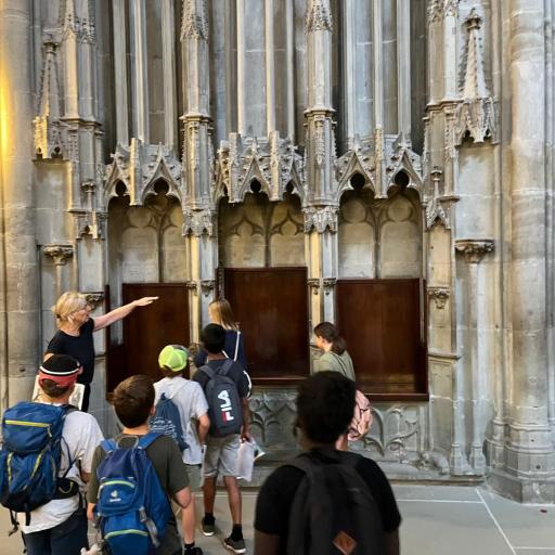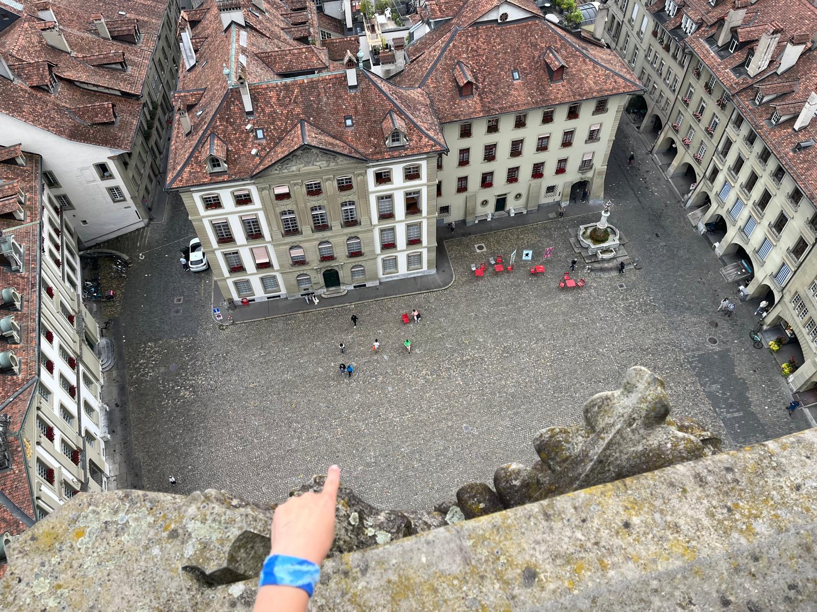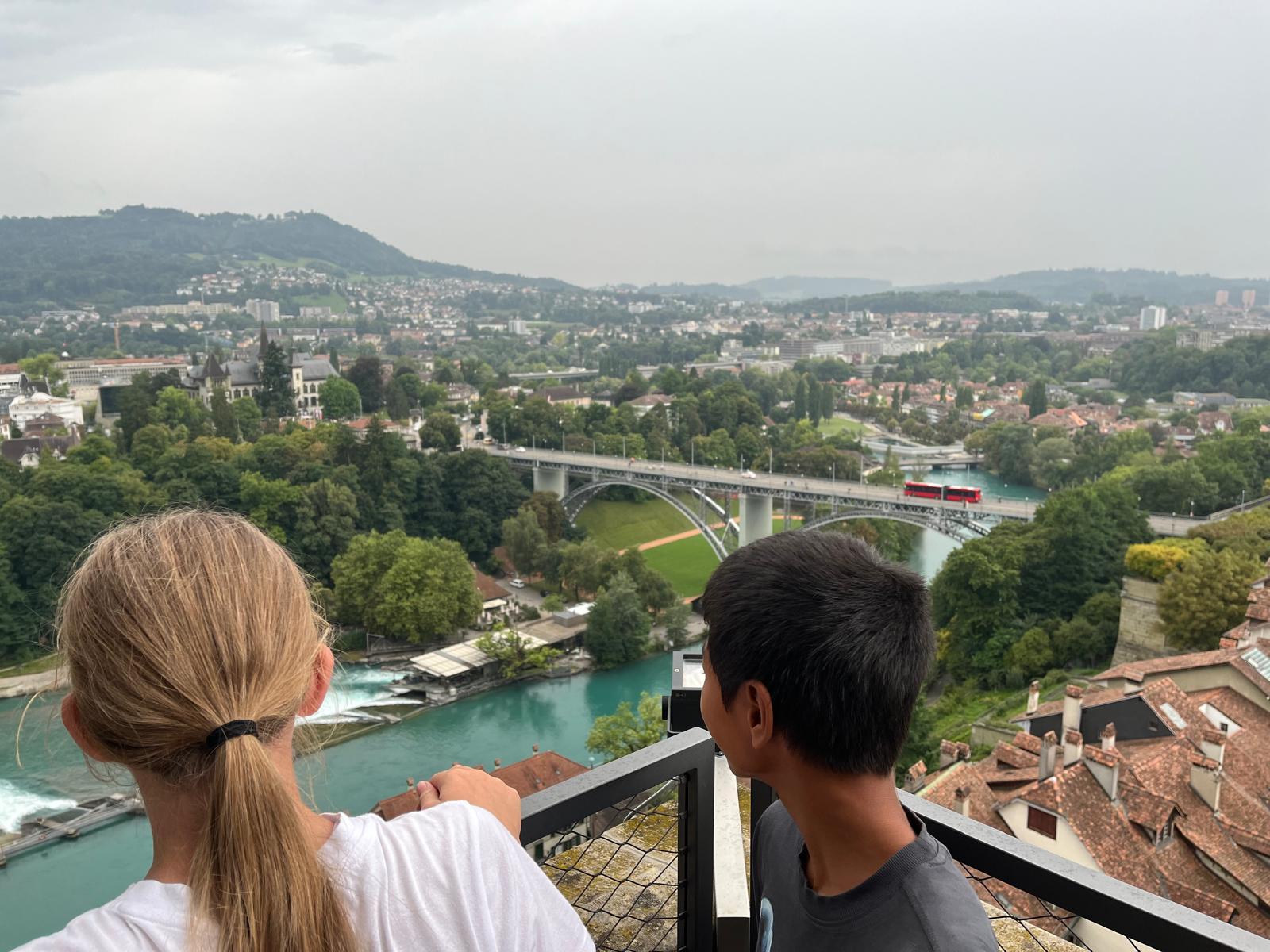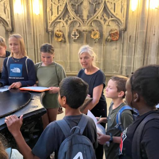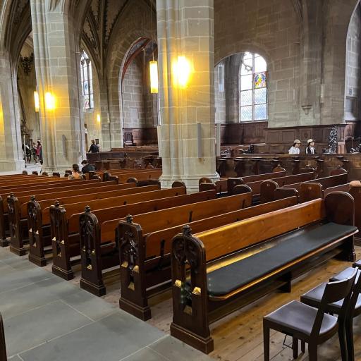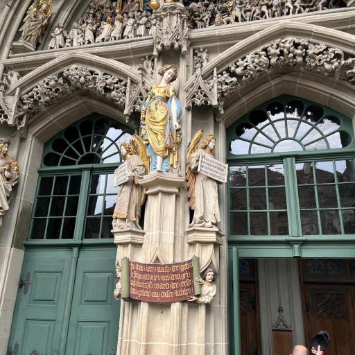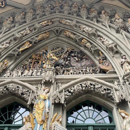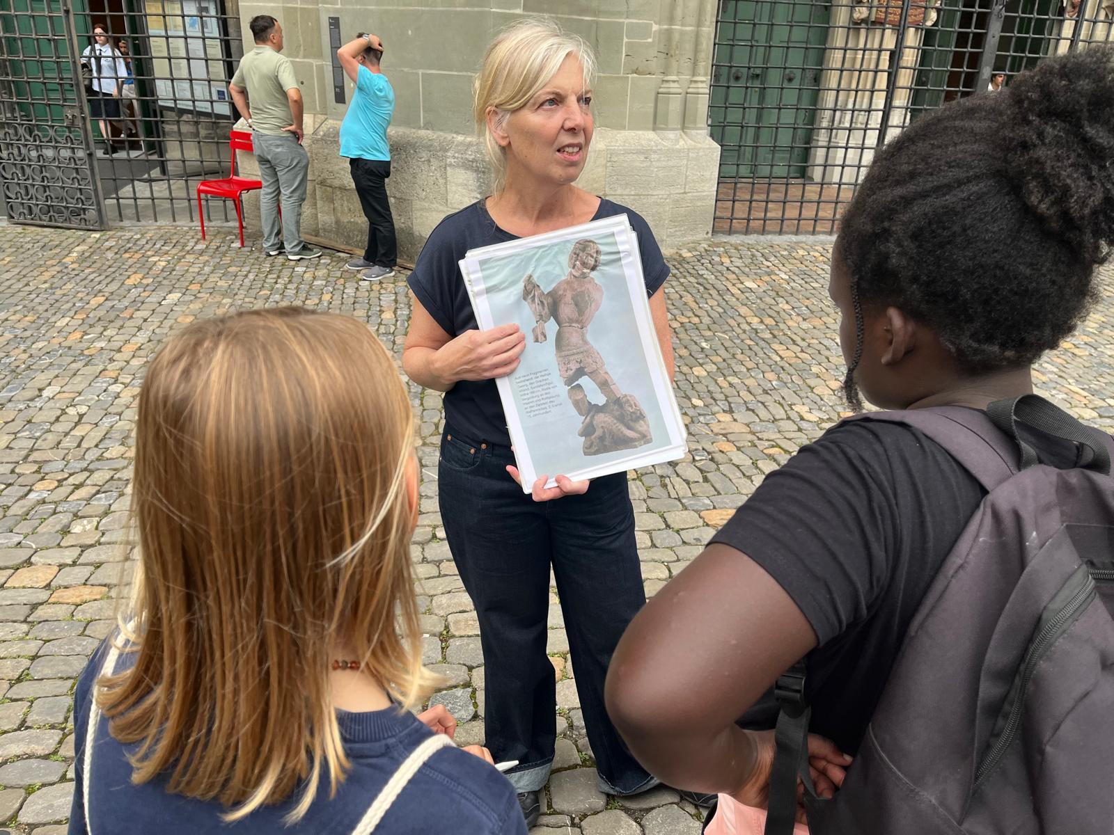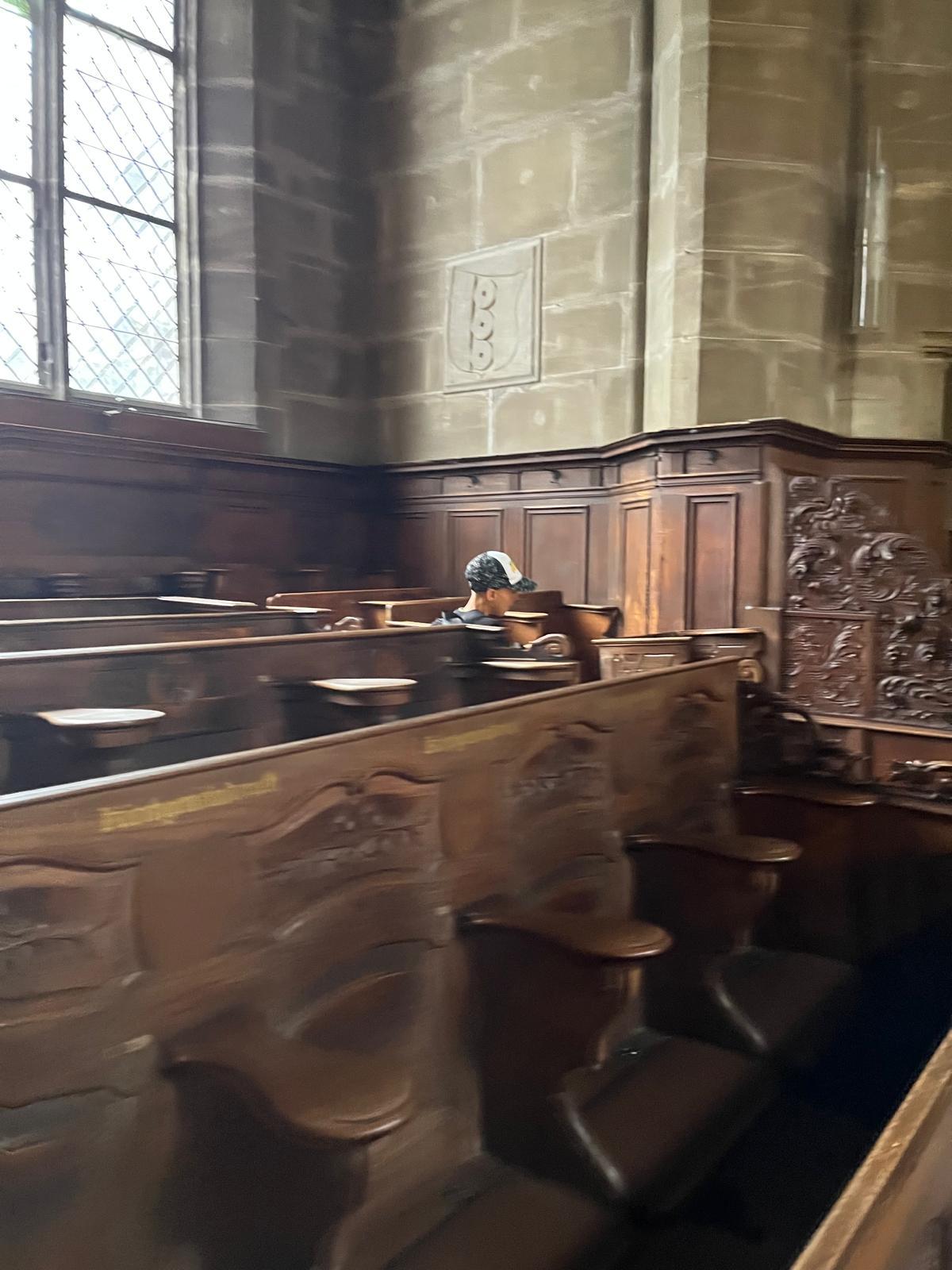 Heute besuchten wir das Berner Münster, eine riesige und sehr alte Kirche mitten in Bern. Sie ist über 600 Jahre alt und ganz schön beeindruckend! Unsere Führerin, Frau Kels, zeigte uns vieles und erzählte spannende Geschichten über die Reformationszeit vor rund 500 Jahren. Früher war das Münster katholisch. Die Menschen beteten zu Heiligen. Das sind besondere Personen, die Gott sehr nahe stehen. Im Münster gab es viele bunte Bilder und Statuen. Doch bei der Reformation änderte sich vieles: Die Leute wollten nun direkt zu Gott beten, ohne Heilige oder Bilder, und auch selbst die Bibel lesen. Musik und Kunst galten als Ablenkung. Deshalb wurden viele Figuren entfernt und auf die Münsterplattform geworfen. Nur das grosse Kunstwerk «Das Jüngste Gericht» blieb erhalten. Es zeigt über 180 Figuren: Gute Menschen kommen in den Himmel, böse in die Hölle. Warum gerade dieses Kunstwerk nicht zerstört wurde, weiss niemand genau. Die letzte katholische Messe fand bei der Metzgerzunft statt. Das war eine Gruppe von Berner Fleischern. Wir sahen die Schwalbenorgel, die hoch oben hängt wie ein Vogel. Die alte Orgel wurde ins Wallis gebracht. Früher war Musik verboten, aber heute darf man wieder Orgel spielen. Wir stiegen viele, viele Treppen hoch zur Glockenstube und zur ersten Aussichtsplattform. In der Glockenstube hängen riesige Glocken. Von oben hatten wir eine tolle Aussicht über Bern. Die Stadt sah aus wie ein Spielzeugland! Wir sahen Moses auf dem Mosesbrunnen auf dem Münsterplatz mit den Zehn Geboten (auch «Zehn Worte» genannt) auf zwei Steintafeln. Sein Gesicht glänzt, weil er mit Gott gesprochen hat. Deshalb hat man ihm zwei kleine Hörner auf den Kopf gesetzt und das war früher ein Zeichen für göttlichen Abglanz. Anschliessend fuhren wir vor das Gefängnis für Männer auf den Thorberg zur JVA (Justizvollzugsanstalt) Thorberg. Dort steht noch heute das «Glauser-Hüsi», ein kleines Häuschen aus der Zeit des Kartäuserklosters. Es wurde von Kartäusermönchen gebaut und gehörte zur Klosteranlage. Prior und Kartäusermönch Niclaus Schürstein lebte dort. Während der Reformation verliess er den Orden und wurde später ein reformierter Pfarrer. Ein besonders lustiger Moment war, als wir chinesische Touristen trafen. Sie waren sehr freundlich, und wir begrüssten sie mit einem fröhlichen «Nǐ hǎo», das heisst «Guten Tag» auf Chinesisch.