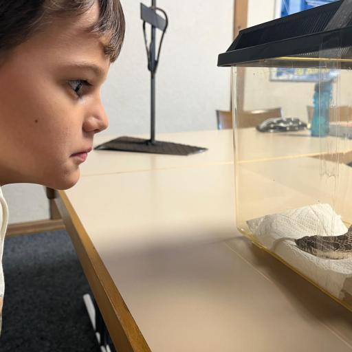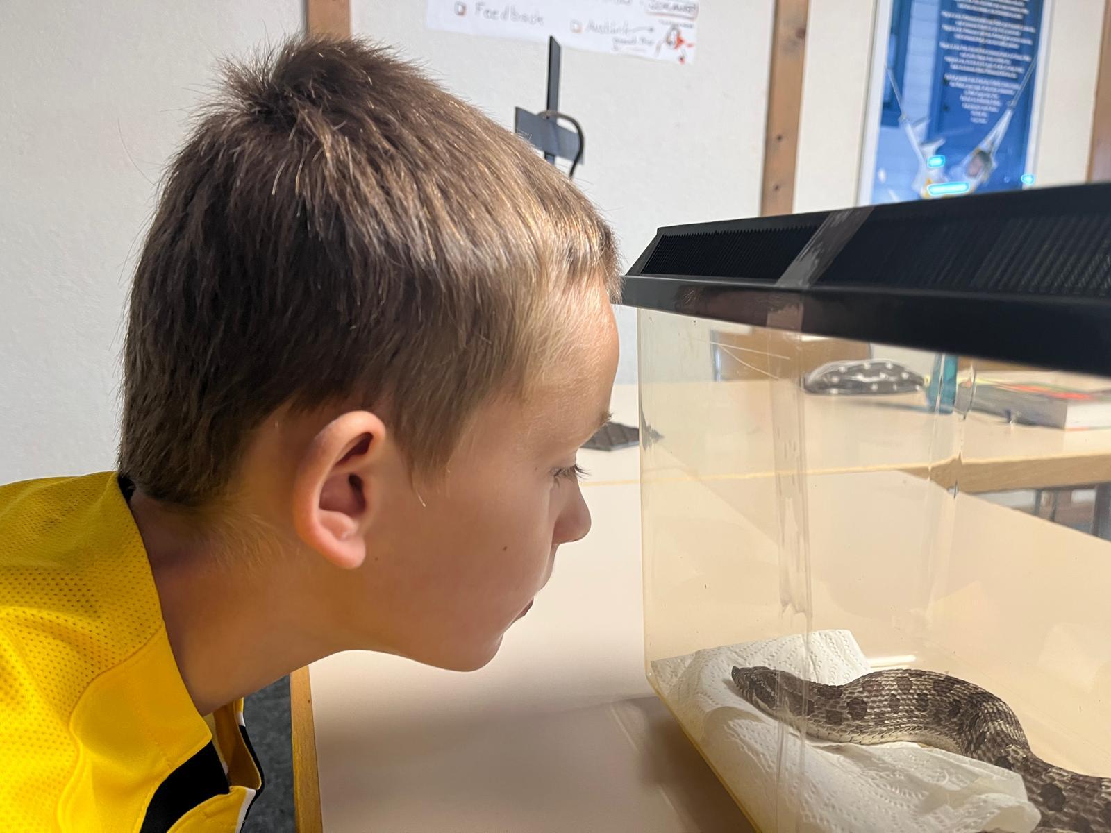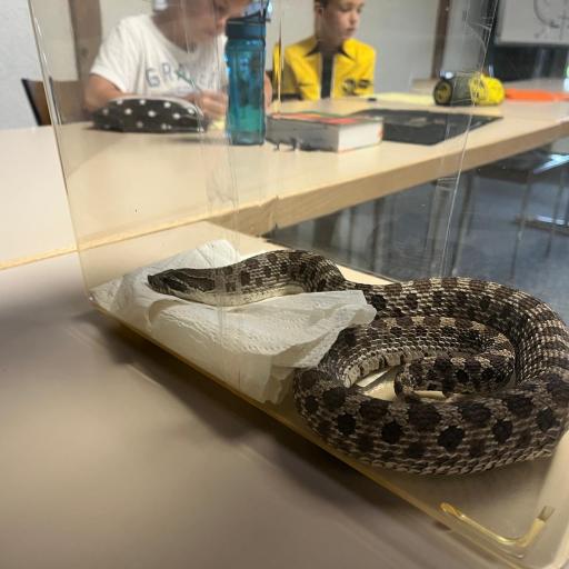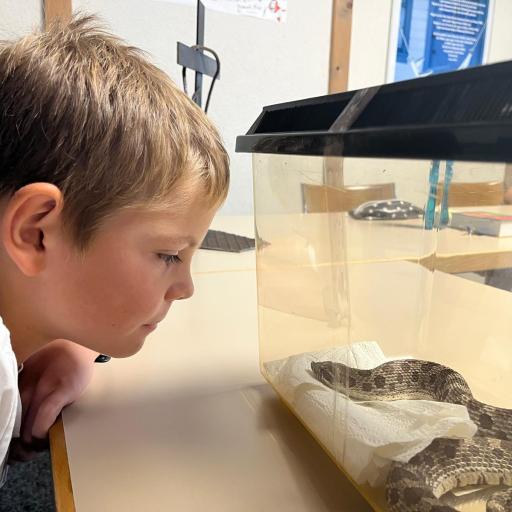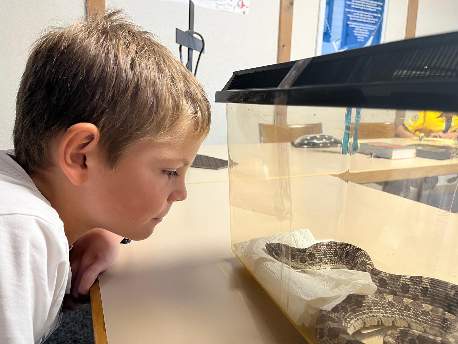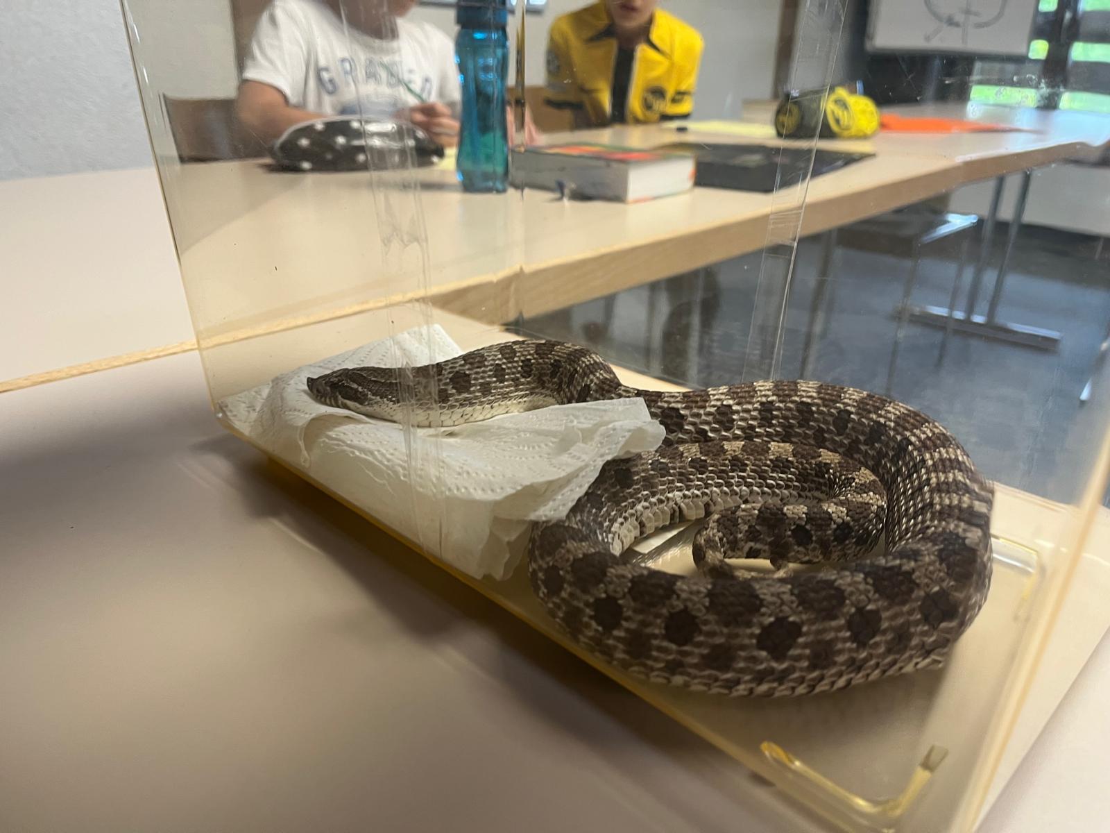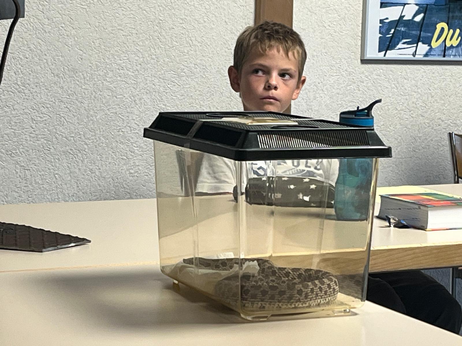Heute haben wir in der KUW ganz fest zusammen gebetet. Das «Unser Vater». Danach haben wir uns erinnert, was wir beim letzten Mal gelernt haben. Und dann wurde es richtig spannend: Wir haben Geschichten aus der Bibel gelesen und dabei wieder Kaugummi gekaut. Dieses Wiederkäuen erinnert uns daran, dass das Wort Gottes unsere seelische Nahrung ist, da wir wie eine Kuh den biblischen Text immer und immer wieder lesen. Wir hörten von einer Zeit, in der das Volk Israel durch die Wüste wanderte. Dort gab es giftige Schlangen, die viele Menschen gebissen haben. Die Leute hatten grosse Angst und baten Mose, mit Gott zu sprechen. Gott sagte Mose, er solle eine Schlange aus Kupfer machen und sie auf einen Stab setzen. Wer von einer Schlange gebissen wurde und die Kupferschlange anschaute, wurde gesund und gerettet! Jesus hat später von dieser Geschichte erzählt und gesagt: Wer ihn anschaut und an ihn glaubt, wird auch gerettet und bekommt das ewige Leben geschenkt. Das ist ein wunderschönes Versprechen! Wir haben diese Geschichten selbst in der Bibel gesucht, im Tanach (das ist die jüdische Bibel) und im Neuen Testament. Und dann kam ein ganz besonderer Moment: Eine echte Schlange hat uns besucht! Es war eine Hakennasennatter. Herr Arnold, ihr Besitzer, hat uns erklärt, dass ihr Gift etwa so wirkt wie das einer Biene also nicht gefährlich für uns. Die Schlange war wunderschön. Danach haben wir ein besonderes Kunstwerk angeschaut und sogar in die Hände genommen: Die eherne Schlange am Kreuz, gestaltet vom Kartäusermönch Bruder Janez. Er ist der älteste noch lebende Kartäuser der Welt und hat dieses Kunstwerk extra für uns 3. Klässler der KUW Madiswil gemacht. Wir haben das Bild abgezeichnet und Bruder Janez dafür gedankt. Zum Schluss durften wir sagen, ob uns die heutige KUW gefallen hat. Wir haben heute gelernt, dass der Glaube an Jesus uns helfen kann, wenn es im Leben schwierig wird. Wir haben gespürt, dass Gott uns ganz nahe ist und uns Hoffnung schenkt. Und wir durften kreativ sein und dabei viel über Jesus und die Bibel erfahren.