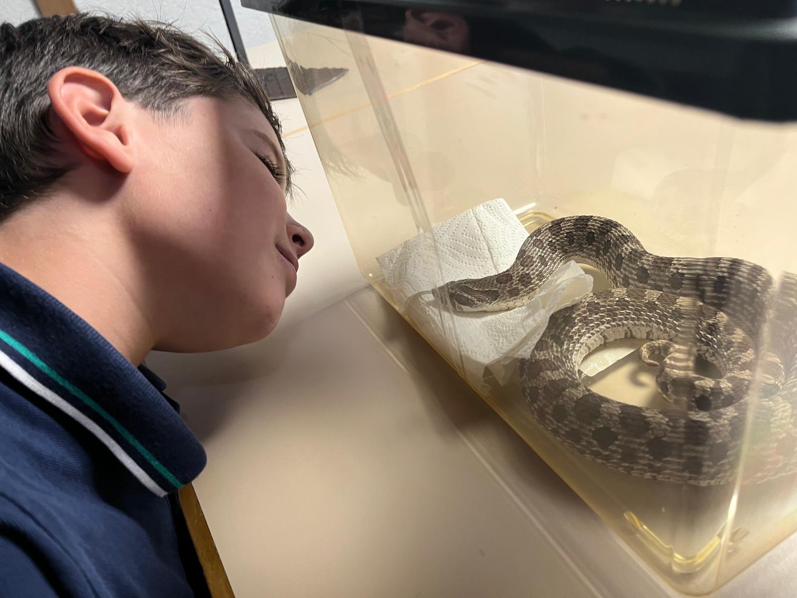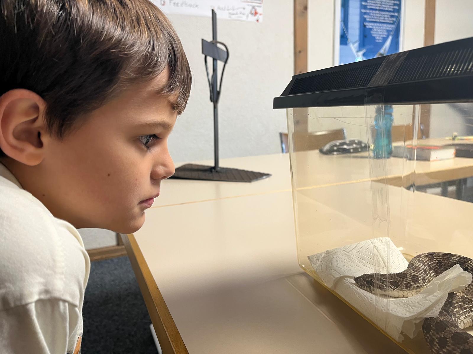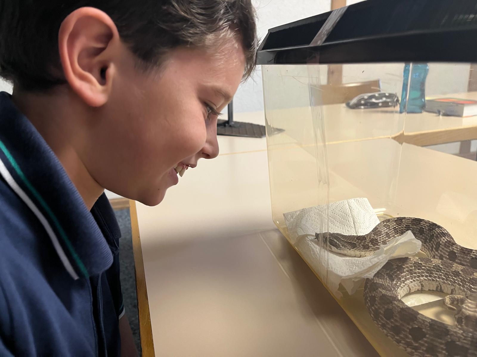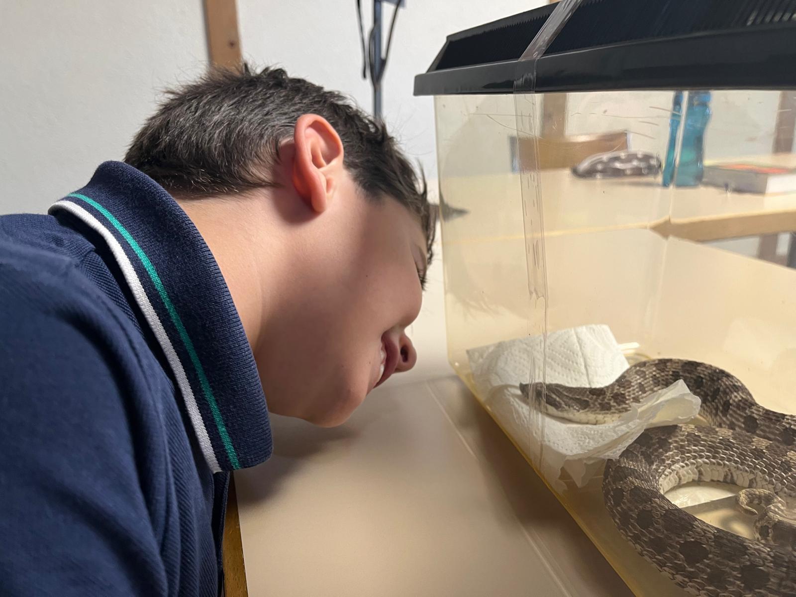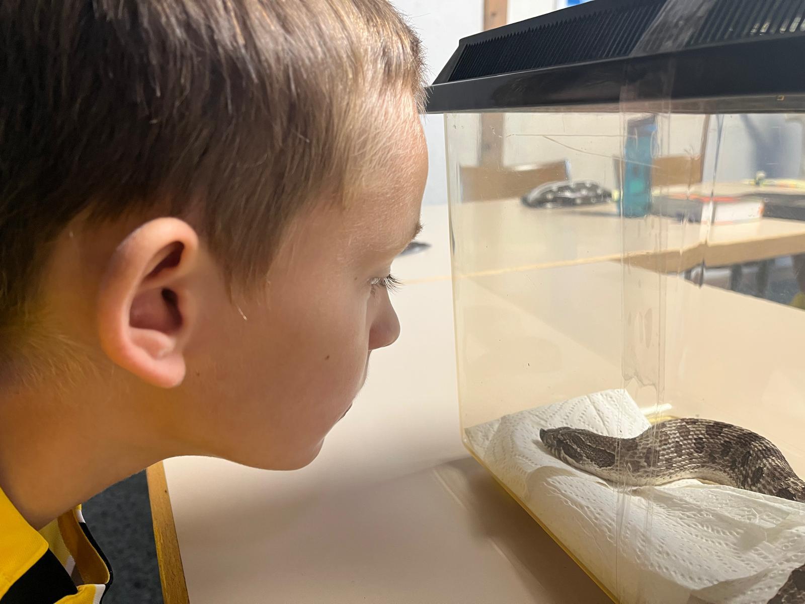 Heute haben wir in der KUW ganz fest zusammen gebetet. Das «Unser Vater». Danach haben wir uns erinnert, was wir beim letzten Mal gelernt haben. Und dann wurde es richtig spannend: Wir haben Geschichten aus der Bibel gelesen und dabei wieder Kaugummi gekaut. Dieses Wiederkäuen erinnert uns daran, dass das Wort Gottes unsere seelische Nahrung ist, da wir wie eine Kuh den biblischen Text immer und immer wieder lesen. Wir hörten von einer Zeit, in der das Volk Israel durch die Wüste wanderte. Dort gab es giftige Schlangen, die viele Menschen gebissen haben. Die Leute hatten grosse Angst und baten Mose, mit Gott zu sprechen. Gott sagte Mose, er solle eine Schlange aus Kupfer machen und sie auf einen Stab setzen. Wer von einer Schlange gebissen wurde und die Kupferschlange anschaute, wurde gesund und gerettet! Jesus hat später von dieser Geschichte erzählt und gesagt: Wer ihn anschaut und an ihn glaubt, wird auch gerettet und bekommt das ewige Leben geschenkt. Das ist ein wunderschönes Versprechen! Wir haben diese Geschichten selbst in der Bibel gesucht, im Tanach (das ist die jüdische Bibel) und im Neuen Testament. Und dann kam ein ganz besonderer Moment: Eine echte Schlange hat uns besucht! Es war eine Hakennasennatter. Herr Arnold, ihr Besitzer, hat uns erklärt, dass ihr Gift etwa so wirkt wie das einer Biene also nicht gefährlich für uns. Die Schlange war wunderschön. Danach haben wir ein besonderes Kunstwerk angeschaut und sogar in die Hände genommen: Die eherne Schlange am Kreuz, gestaltet vom Kartäusermönch Bruder Janez. Er ist der älteste noch lebende Kartäuser der Welt und hat dieses Kunstwerk extra für uns 3. Klässler der KUW Madiswil gemacht. Wir haben das Bild abgezeichnet und Bruder Janez dafür gedankt. Zum Schluss durften wir sagen, ob uns die heutige KUW gefallen hat. Wir haben heute gelernt, dass der Glaube an Jesus uns helfen kann, wenn es im Leben schwierig wird. Wir haben gespürt, dass Gott uns ganz nahe ist und uns Hoffnung schenkt. Und wir durften kreativ sein und dabei viel über Jesus und die Bibel erfahren.