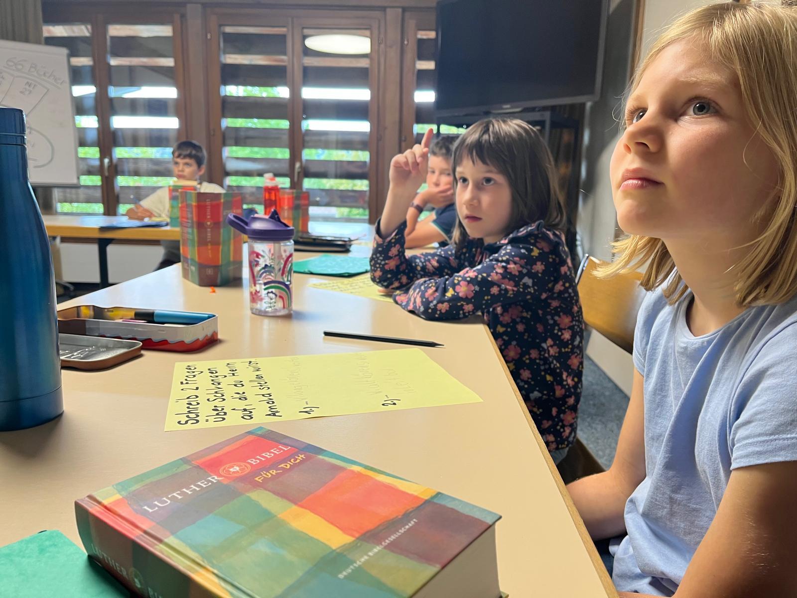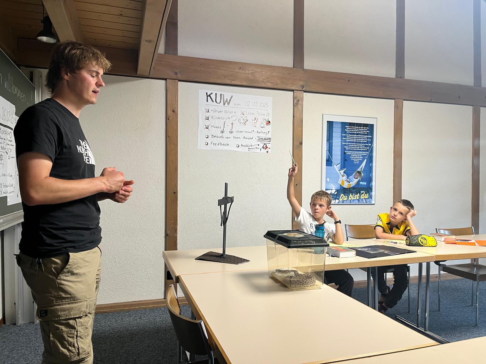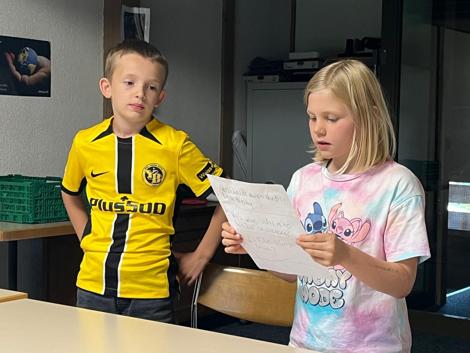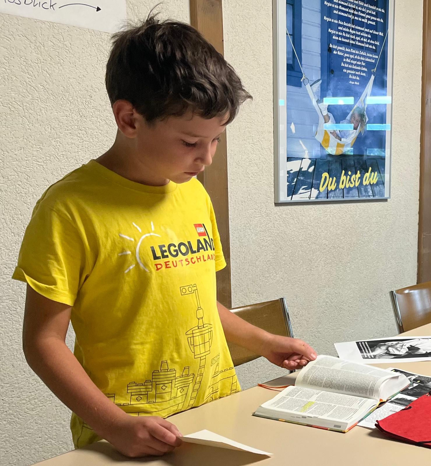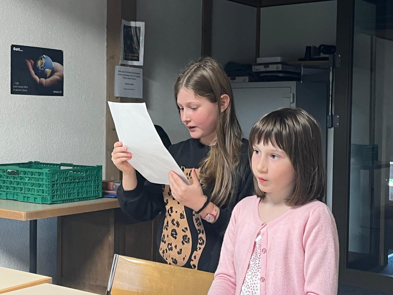 Zu Beginn unsere KUW nachmittags haben wir wie gewohnt gemeinsam das Gebet «Unser Vater» gesprochen. Dieses besondere Gebet hat Jesus seinen zwölf Jüngern beigebracht und auch wir dürfen es beten, wenn wir mit Gott sprechen möchten. Es verbindet uns mit ihm und schenkt uns Ruhe und Vertrauen. Danach haben wir zusammen den Psalm 23 gelesen. Darin beschreibt König David, wie Gott wie ein guter Hirte für uns sorgt. Viele Kinder haben dabei gespürt: Gott ist immer bei uns auch wenn wir Angst haben oder traurig sind. Dann wurden wir zu echten Lesedetektiven! In sechs Gruppen haben wir die spannenden KUW Themen aus der 3. Klasse noch einmal unter die Lupe genommen. Jede Gruppe hat eine kleine Präsentation vorbereitet und den anderen Kindern gezeigt, was sie gelernt hat. So konnten wir gemeinsam alles wiederholen, Fragen stellen und unser Wissen festigen. Unsere KUW Themen waren bunt und aufregend: