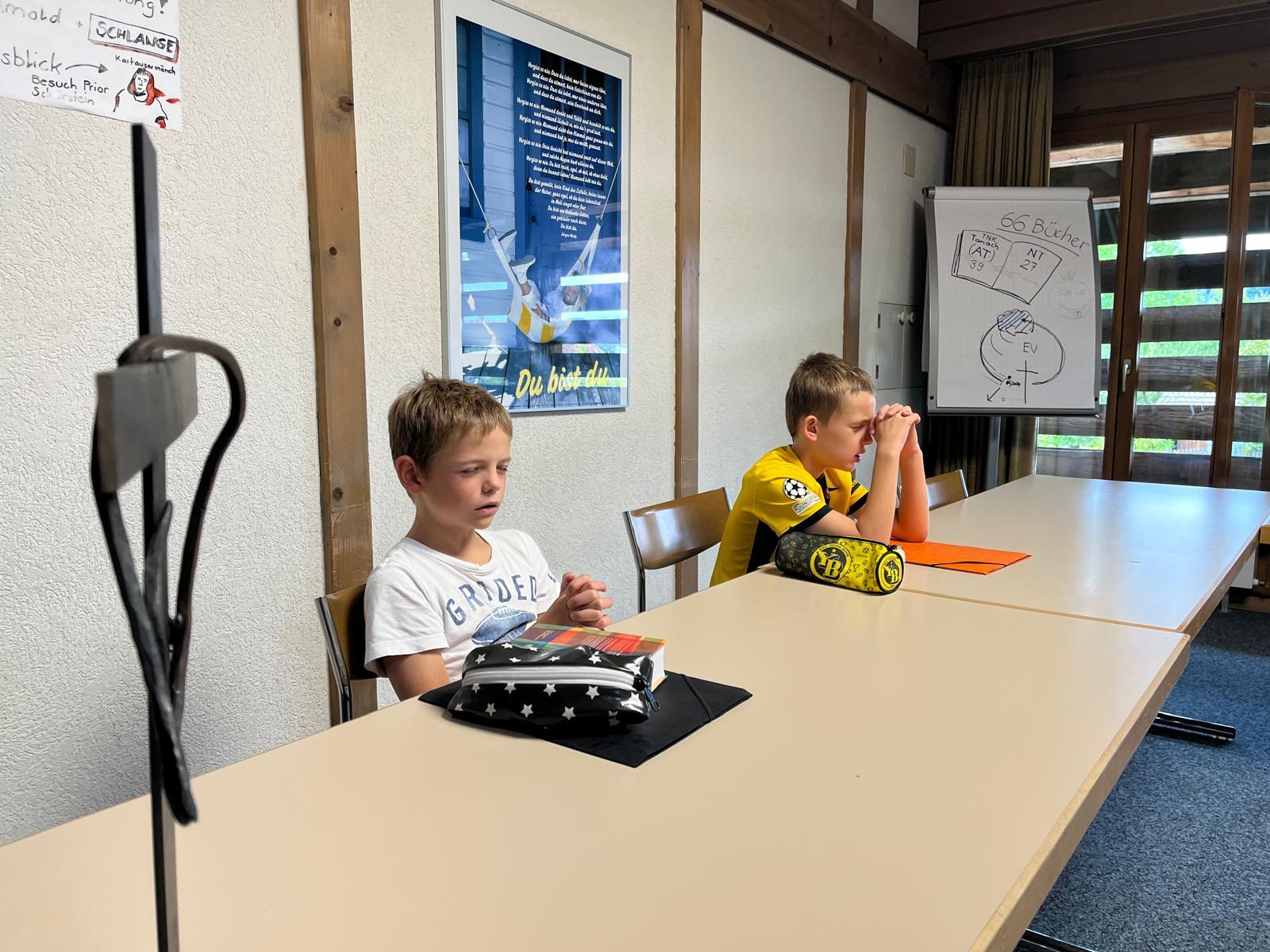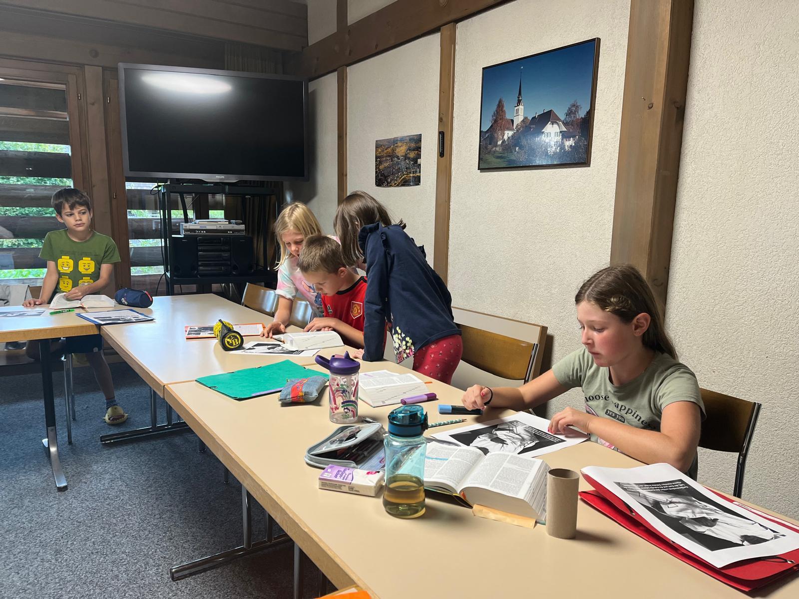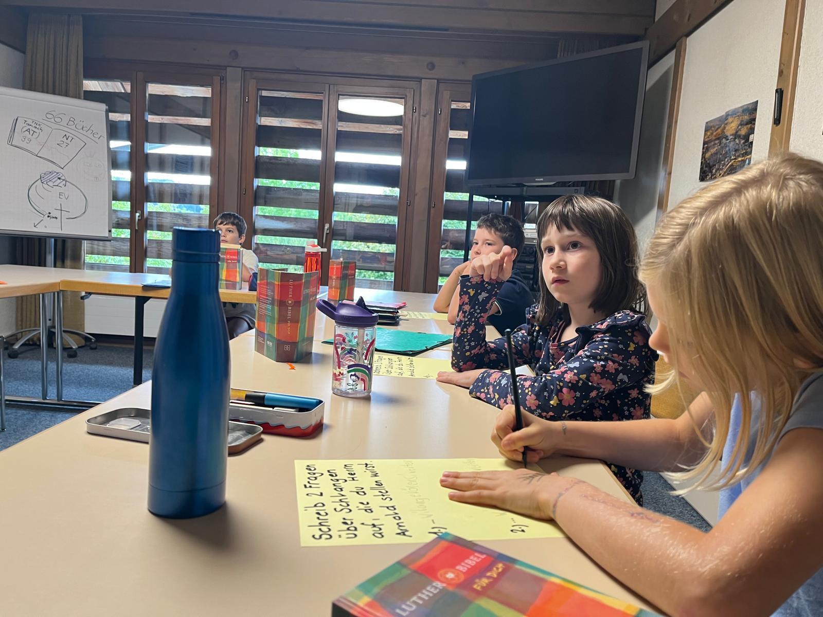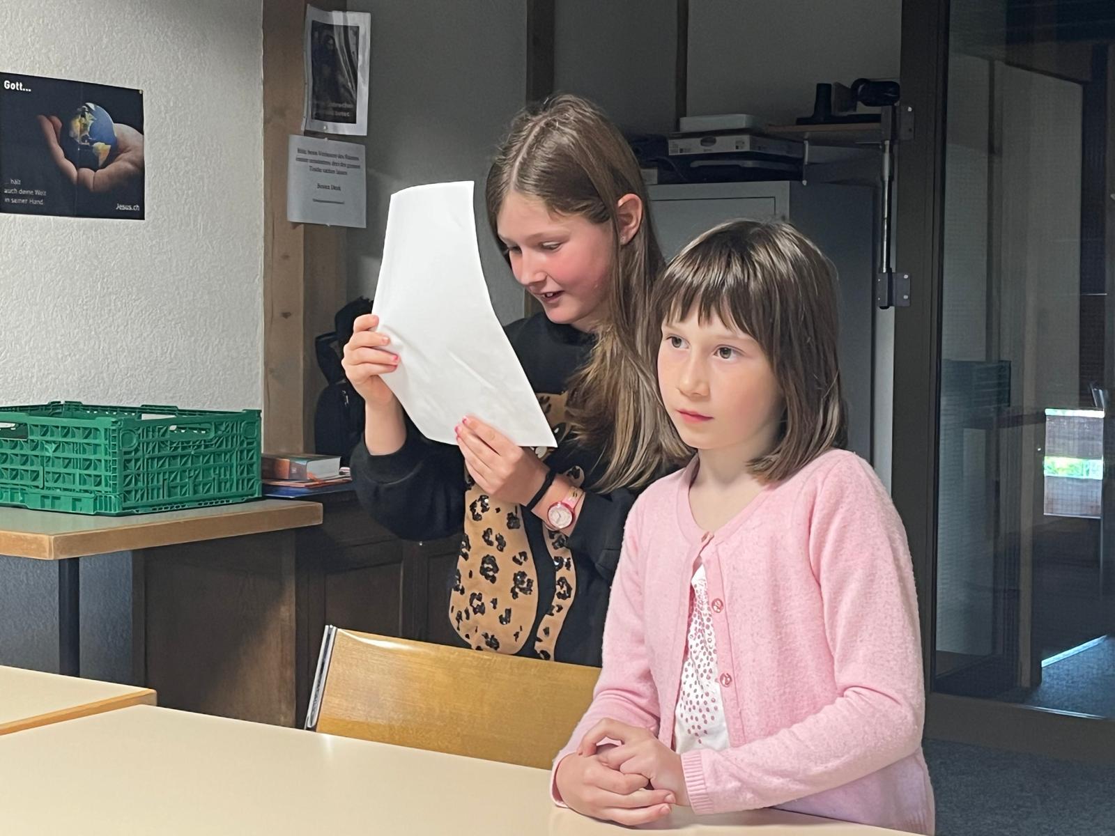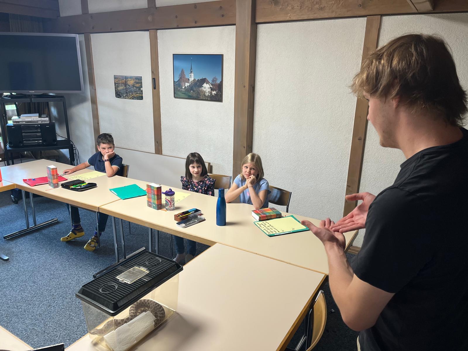 Zu Beginn unsere KUW nachmittags haben wir wie gewohnt gemeinsam das Gebet «Unser Vater» gesprochen. Dieses besondere Gebet hat Jesus seinen zwölf Jüngern beigebracht und auch wir dürfen es beten, wenn wir mit Gott sprechen möchten. Es verbindet uns mit ihm und schenkt uns Ruhe und Vertrauen. Danach haben wir zusammen den Psalm 23 gelesen. Darin beschreibt König David, wie Gott wie ein guter Hirte für uns sorgt. Viele Kinder haben dabei gespürt: Gott ist immer bei uns auch wenn wir Angst haben oder traurig sind. Dann wurden wir zu echten Lesedetektiven! In sechs Gruppen haben wir die spannenden KUW Themen aus der 3. Klasse noch einmal unter die Lupe genommen. Jede Gruppe hat eine kleine Präsentation vorbereitet und den anderen Kindern gezeigt, was sie gelernt hat. So konnten wir gemeinsam alles wiederholen, Fragen stellen und unser Wissen festigen. Unsere KUW Themen waren bunt und aufregend: