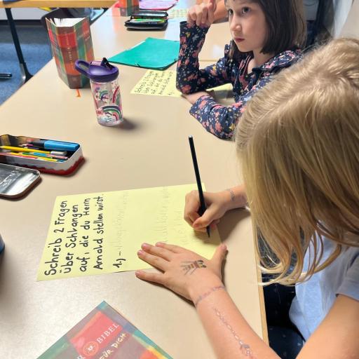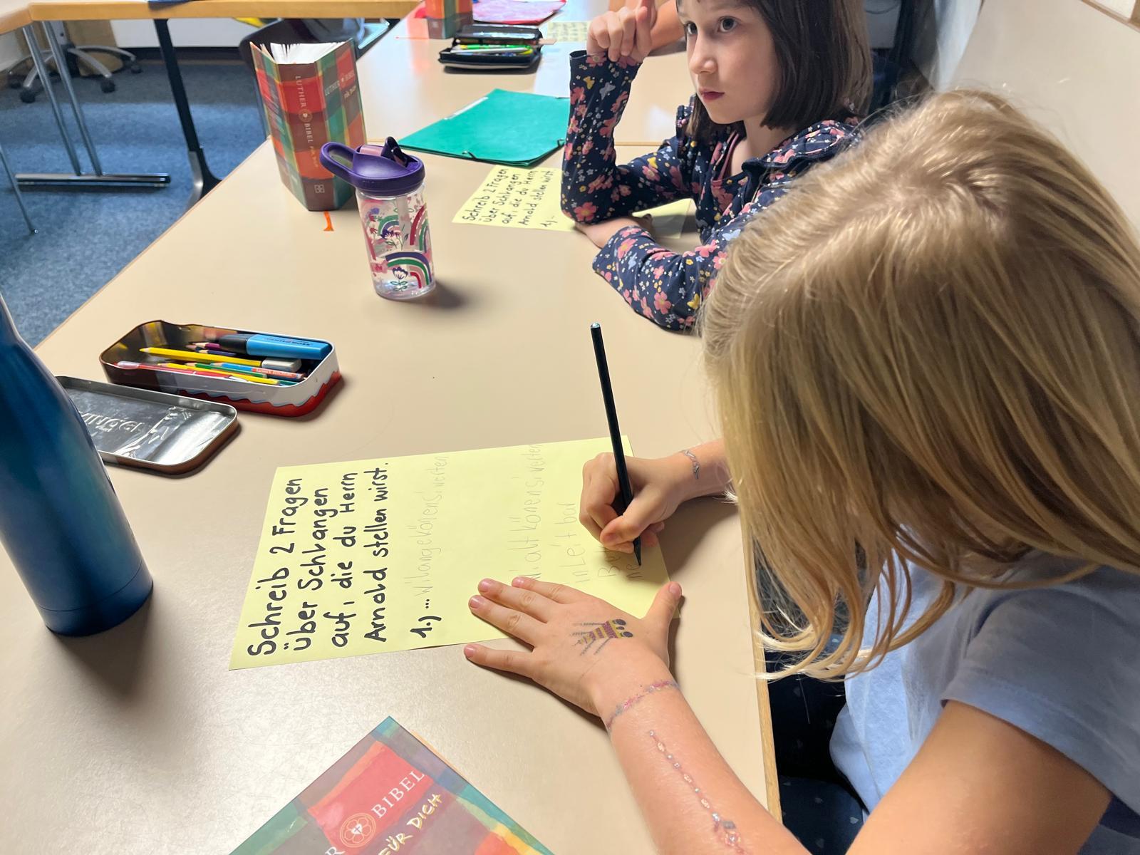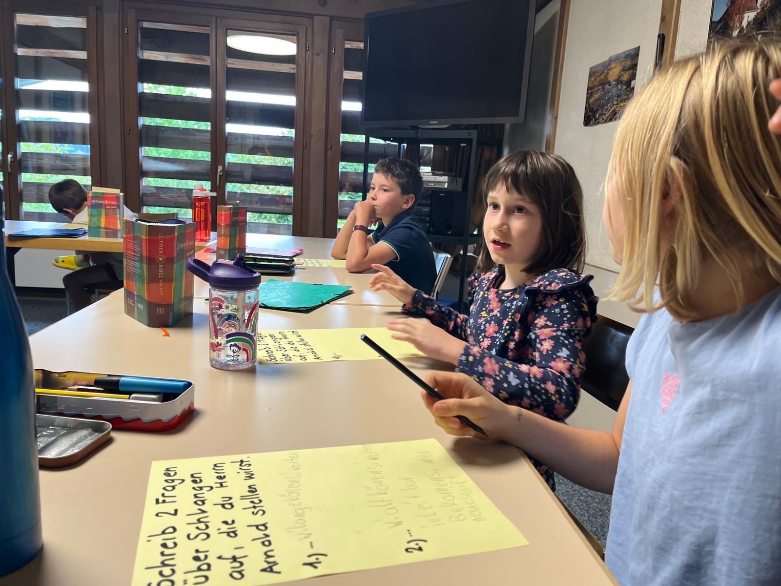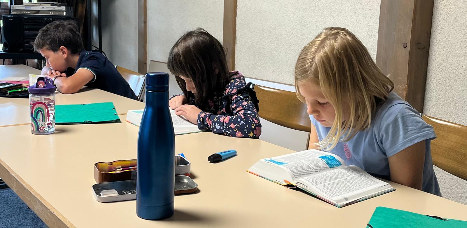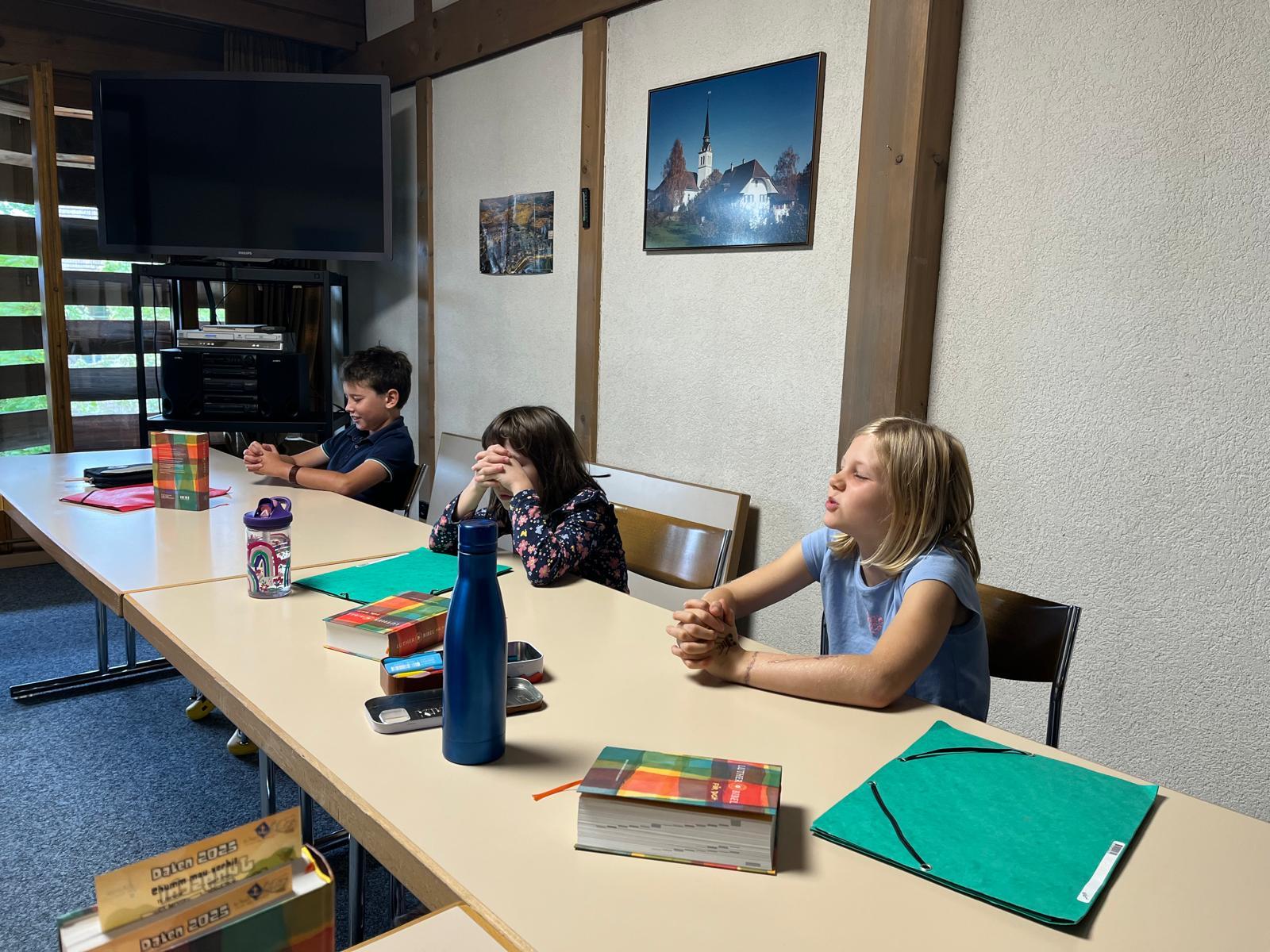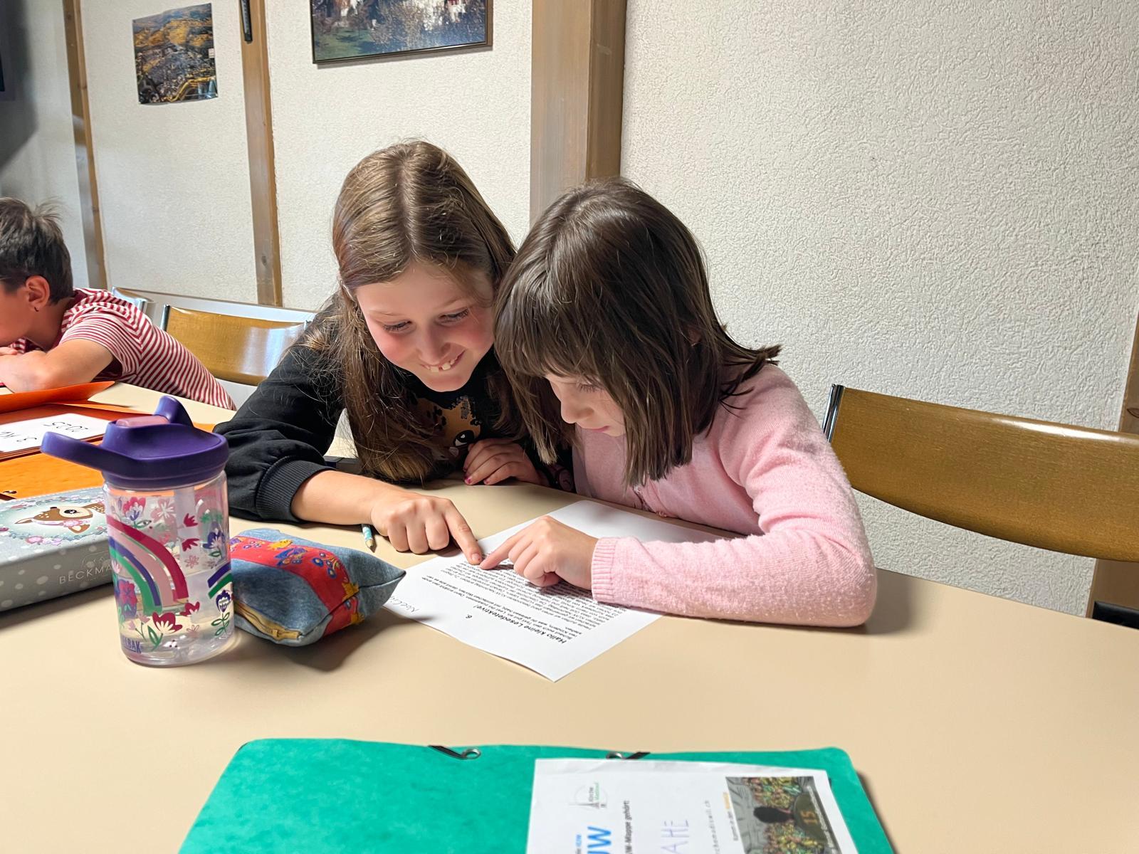 Zu Beginn unsere KUW nachmittags haben wir wie gewohnt gemeinsam das Gebet «Unser Vater» gesprochen. Dieses besondere Gebet hat Jesus seinen zwölf Jüngern beigebracht und auch wir dürfen es beten, wenn wir mit Gott sprechen möchten. Es verbindet uns mit ihm und schenkt uns Ruhe und Vertrauen. Danach haben wir zusammen den Psalm 23 gelesen. Darin beschreibt König David, wie Gott wie ein guter Hirte für uns sorgt. Viele Kinder haben dabei gespürt: Gott ist immer bei uns auch wenn wir Angst haben oder traurig sind. Dann wurden wir zu echten Lesedetektiven! In sechs Gruppen haben wir die spannenden KUW Themen aus der 3. Klasse noch einmal unter die Lupe genommen. Jede Gruppe hat eine kleine Präsentation vorbereitet und den anderen Kindern gezeigt, was sie gelernt hat. So konnten wir gemeinsam alles wiederholen, Fragen stellen und unser Wissen festigen. Unsere KUW Themen waren bunt und aufregend: