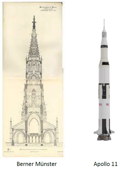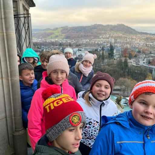 Der Ausblick vom Turm über die Stadt Bern zum Gurten hinüber war einmalig. Der Aufstieg mit den 90 Stufen war anstrengend und man durfte keine Höhenangst haben. Zum Vergleich: Die Saturnrakete, eine bemannte Rakete mit der ersten Mondlandung (Apollo 11 mit den drei Astronauten Neil Armstrong, Michael Collins und Buzz Aldrin) war 100 Meter hoch. Das Berner Münster überragt diese Rakete um 1 Meter!