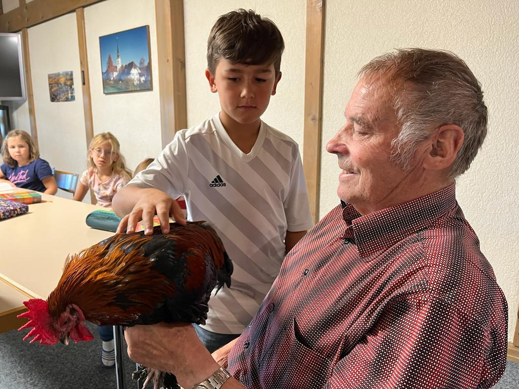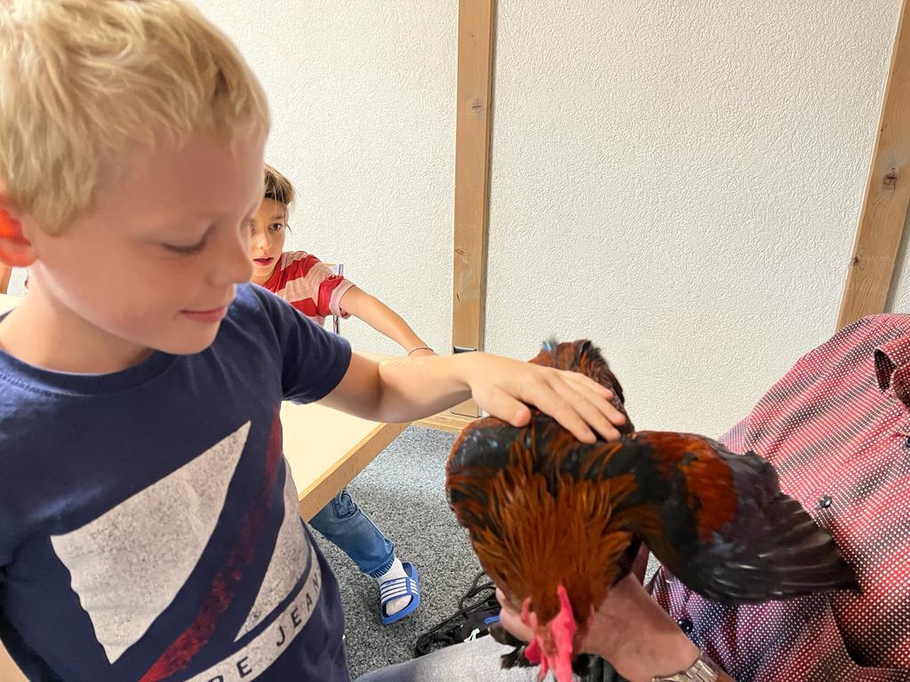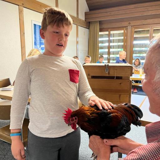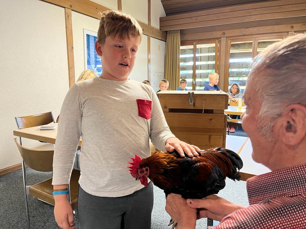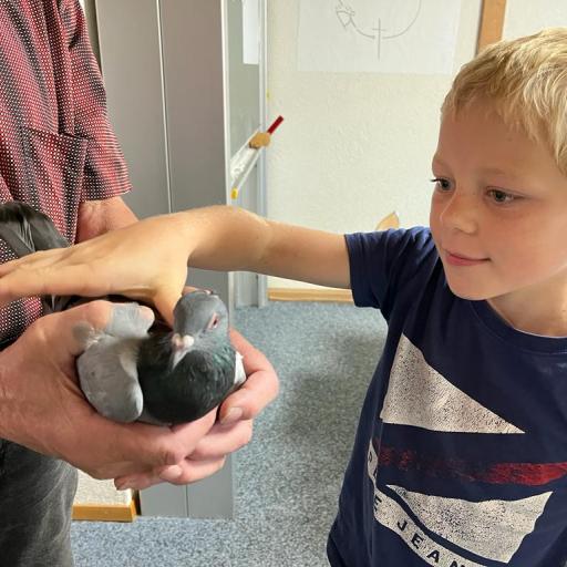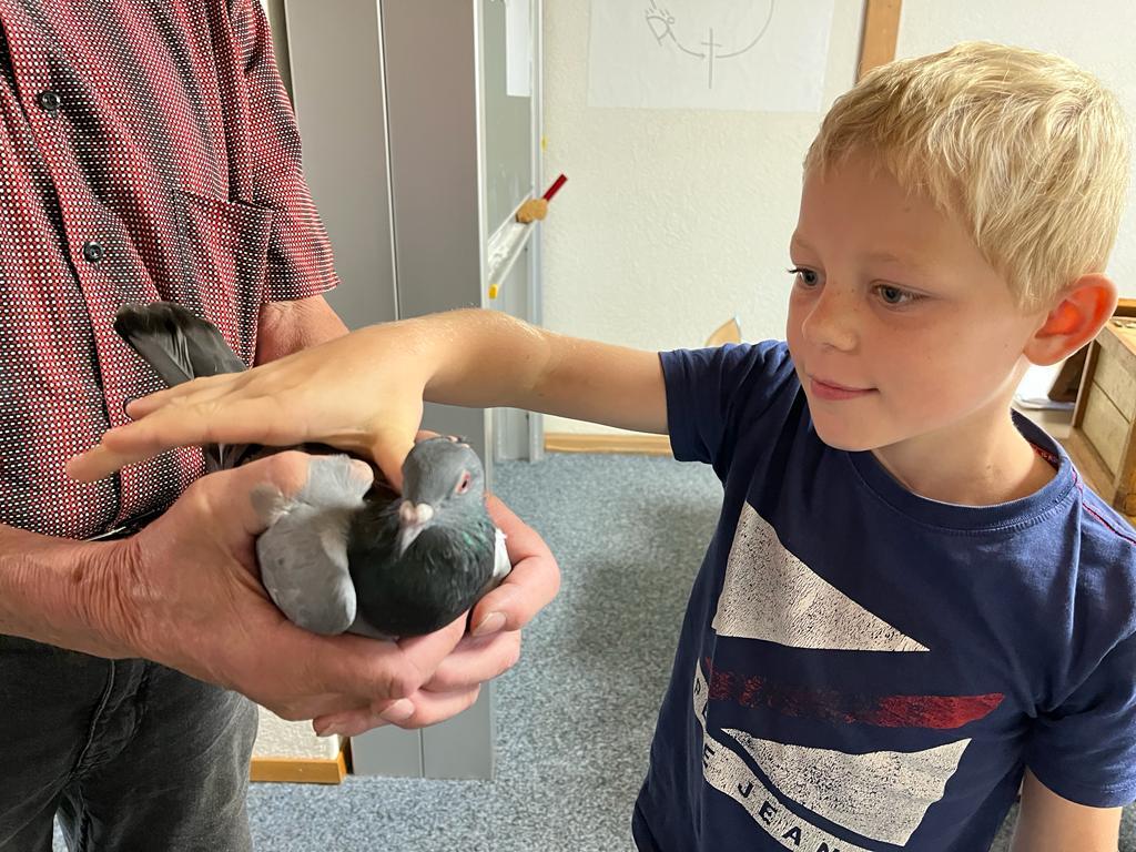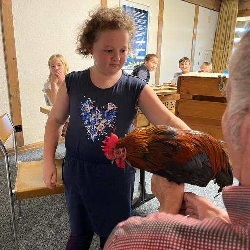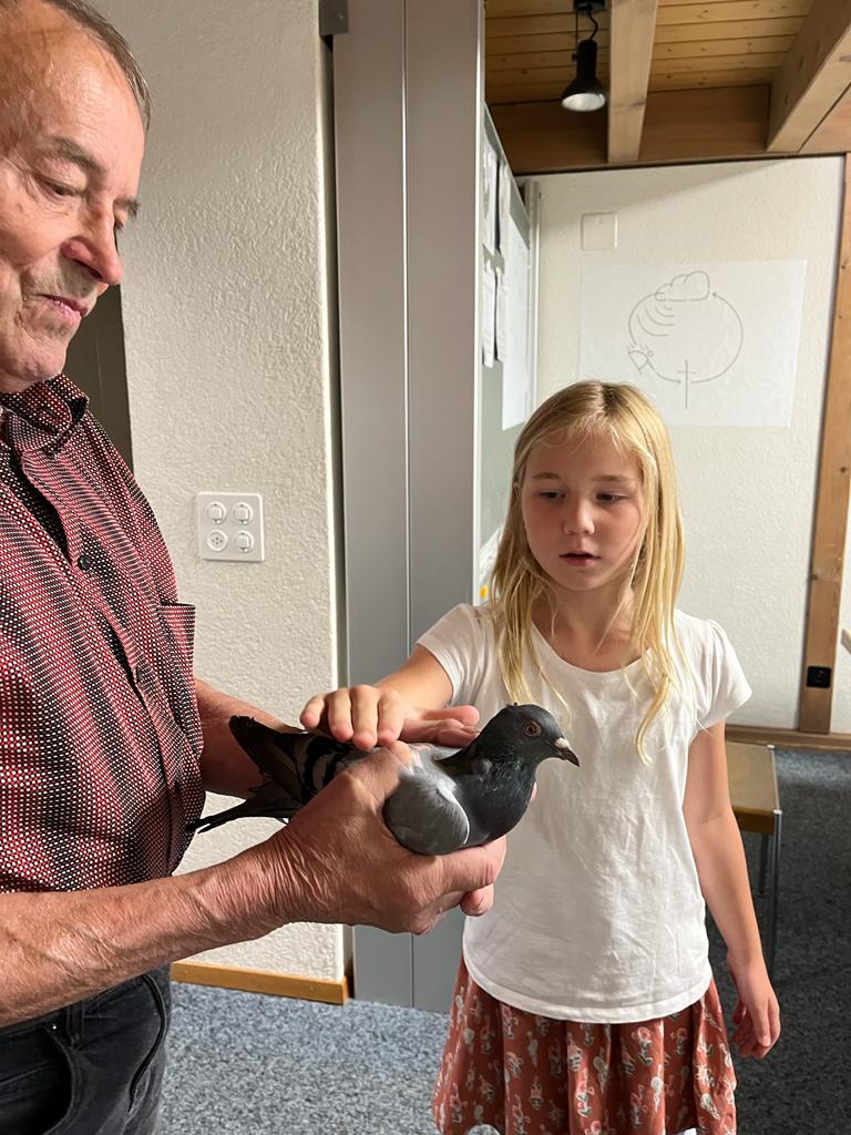 Während dem BibelFEST theologisierten wir, warum wohl Simon Petrus, Jesus dreimal verleugnet hat und stellten uns die Frage: Ob auch wir schon geleugnet haben und weshalb wir Menschen leugnen? Wir betrachteten und diskutierten über den Heiligen Geist. Spürt man diesen und sieht man den Heiligen Geist? Ist er ein Bote wie eine Taube? Der Besuch eines Hahnes (Zwerg Marans) und einer Taube (Blaue Schweizer Brieftaube) rundete die heutige KUW ab. Herr Peter Müller, Landwirt, hat uns die beiden Tiere wunderbar präsentiert.
