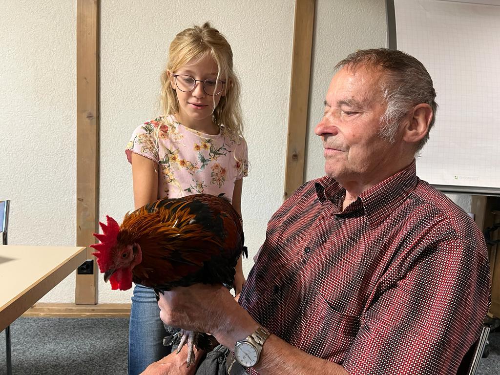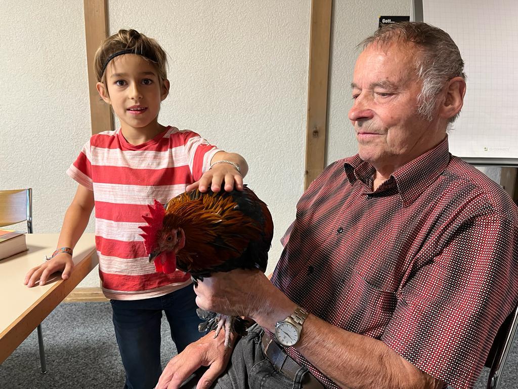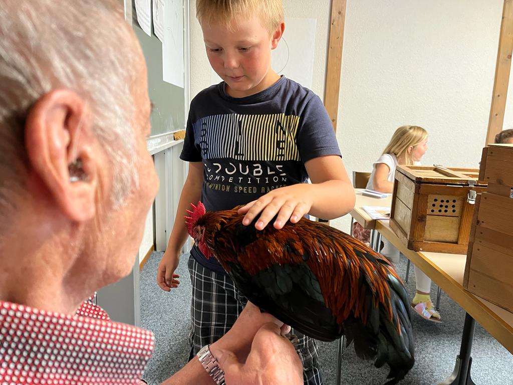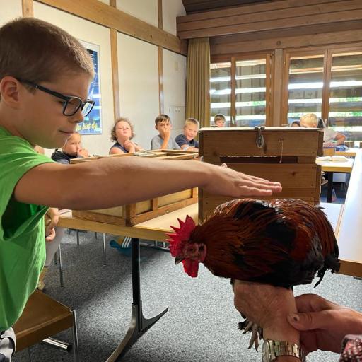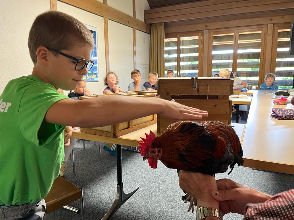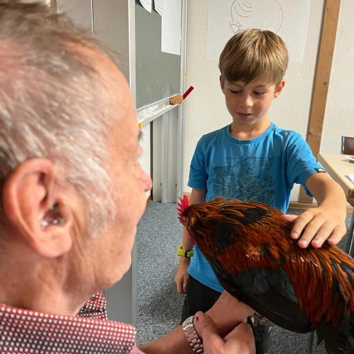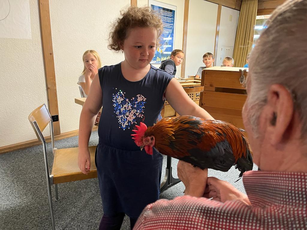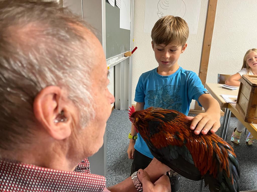 Während dem BibelFEST theologisierten wir, warum wohl Simon Petrus, Jesus dreimal verleugnet hat und stellten uns die Frage: Ob auch wir schon geleugnet haben und weshalb wir Menschen leugnen? Wir betrachteten und diskutierten über den Heiligen Geist. Spürt man diesen und sieht man den Heiligen Geist? Ist er ein Bote wie eine Taube? Der Besuch eines Hahnes (Zwerg Marans) und einer Taube (Blaue Schweizer Brieftaube) rundete die heutige KUW ab. Herr Peter Müller, Landwirt, hat uns die beiden Tiere wunderbar präsentiert.