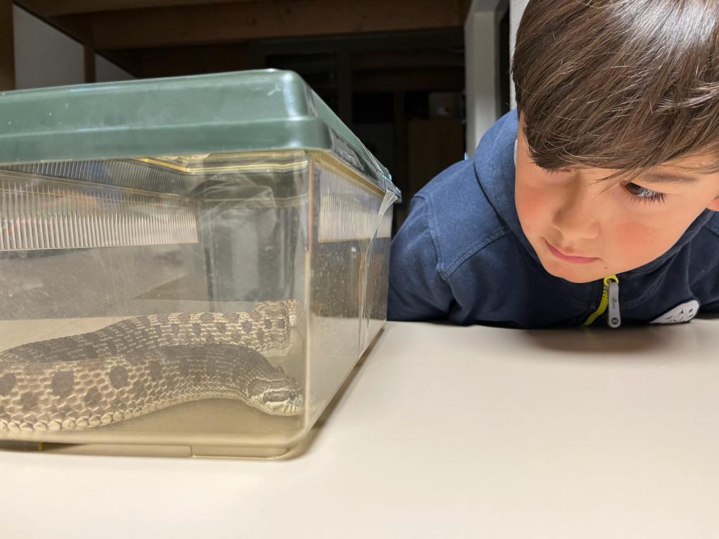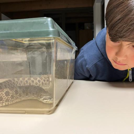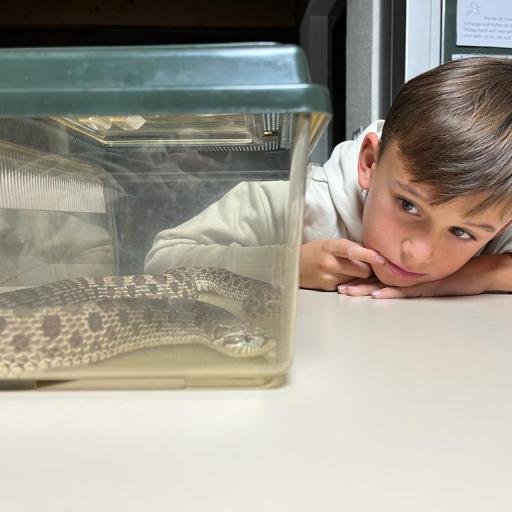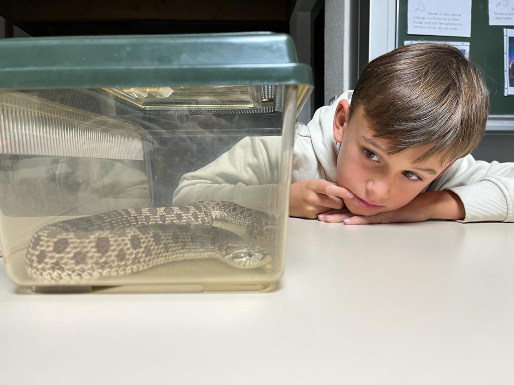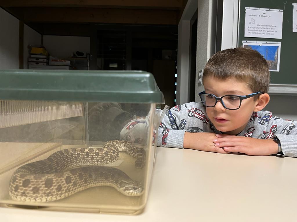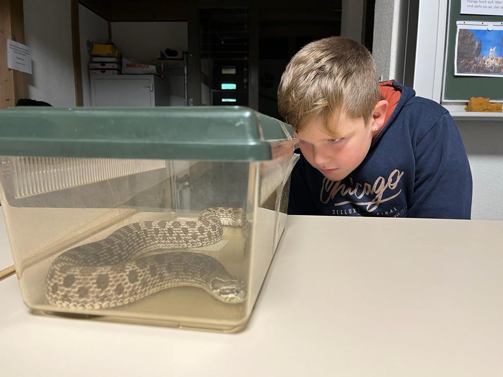 Der Besuch einer Hakennasennatter-Schlange rundete die heutige KUW mit dem Thema Glauben ab. Herr Arnold hat uns seine Schlange vorgestellt und wichtige Informationen über diese wunderbaren Tiere erzählt.