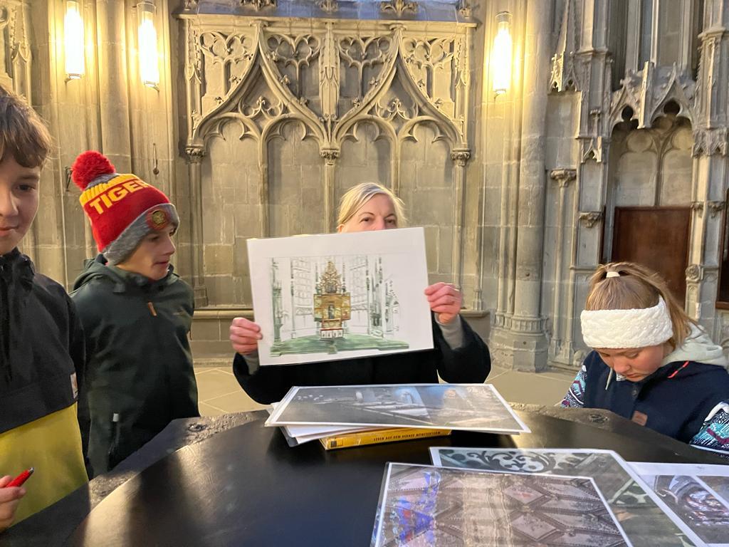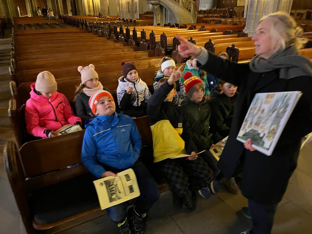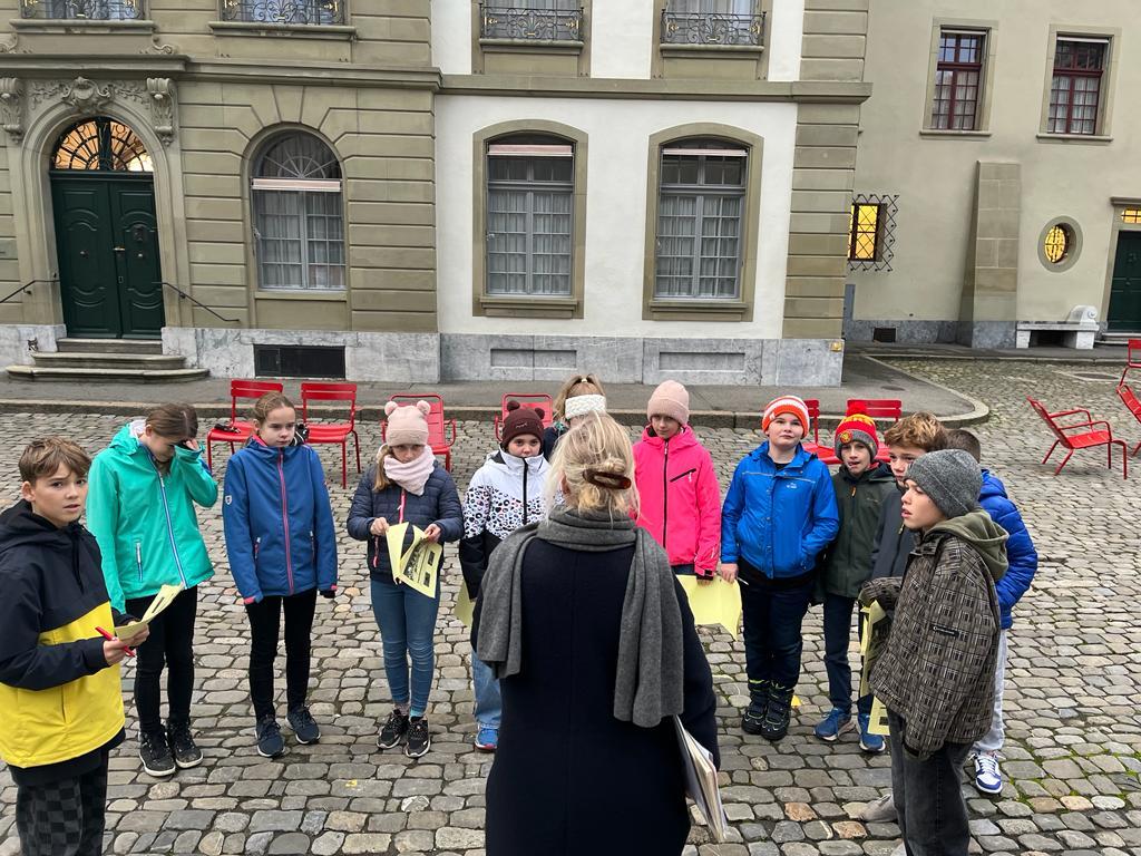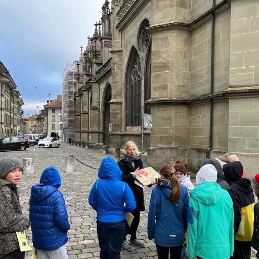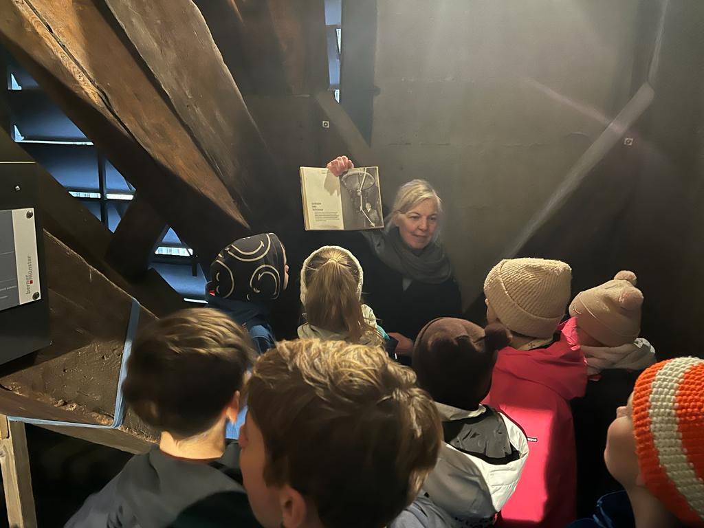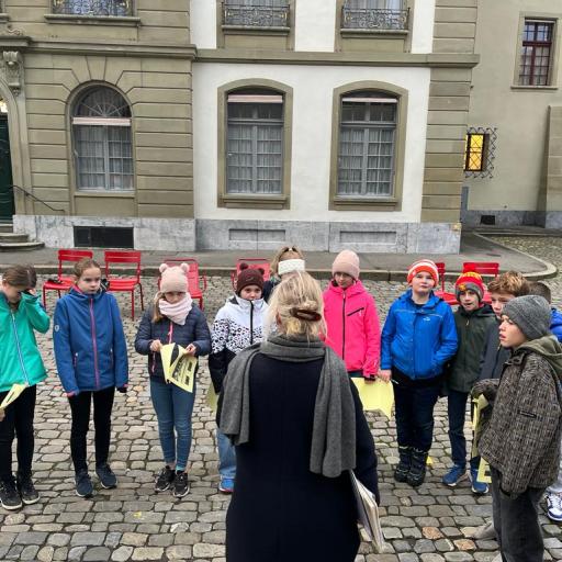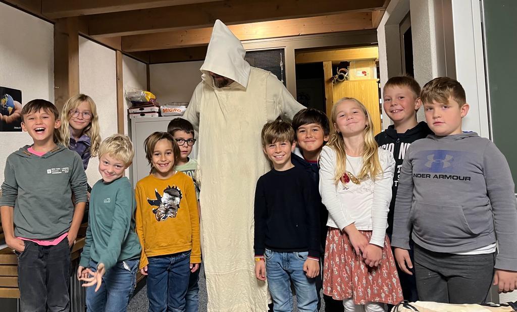(1) Die Kinder erfuhren, dass der Kartäusermönch Niclaus Schürstein im 16. Jahrhundert (während der Reformation, 1517) lebte und das Kartäuser-Kloster auf dem Thorberg abgebrochen wurde und heute ein Gefängnis steht.