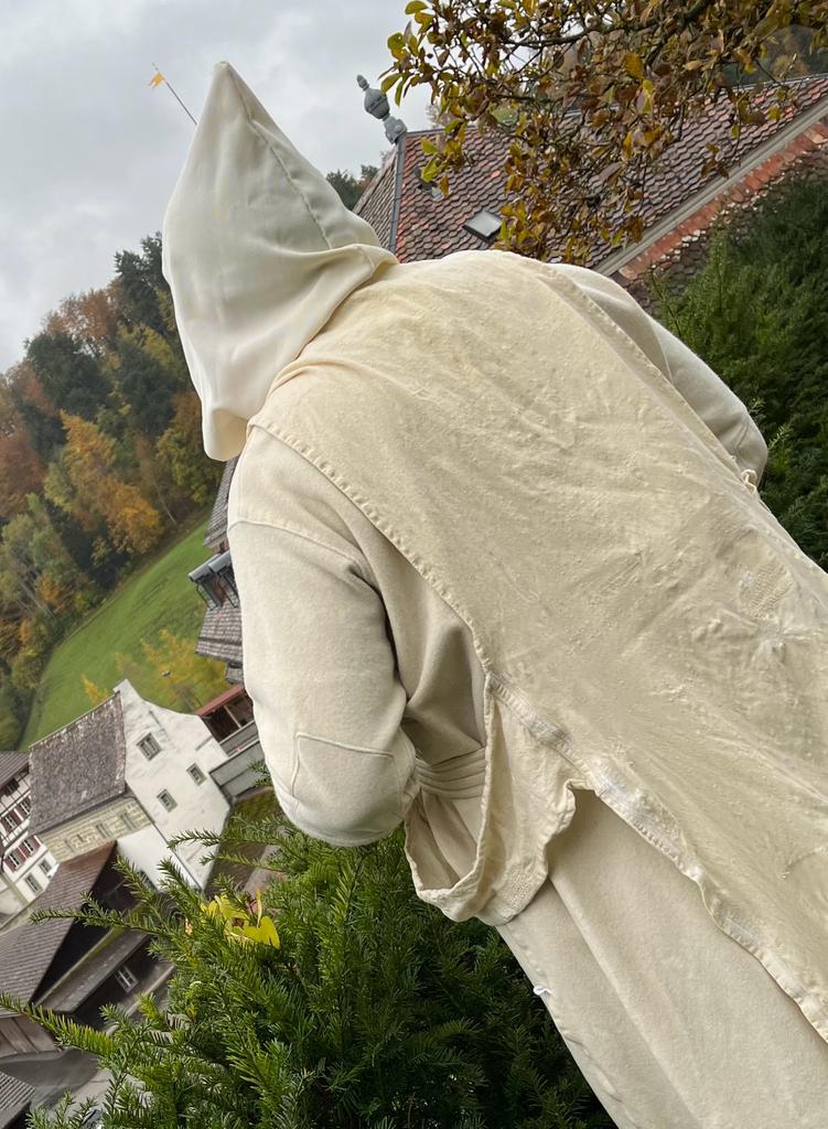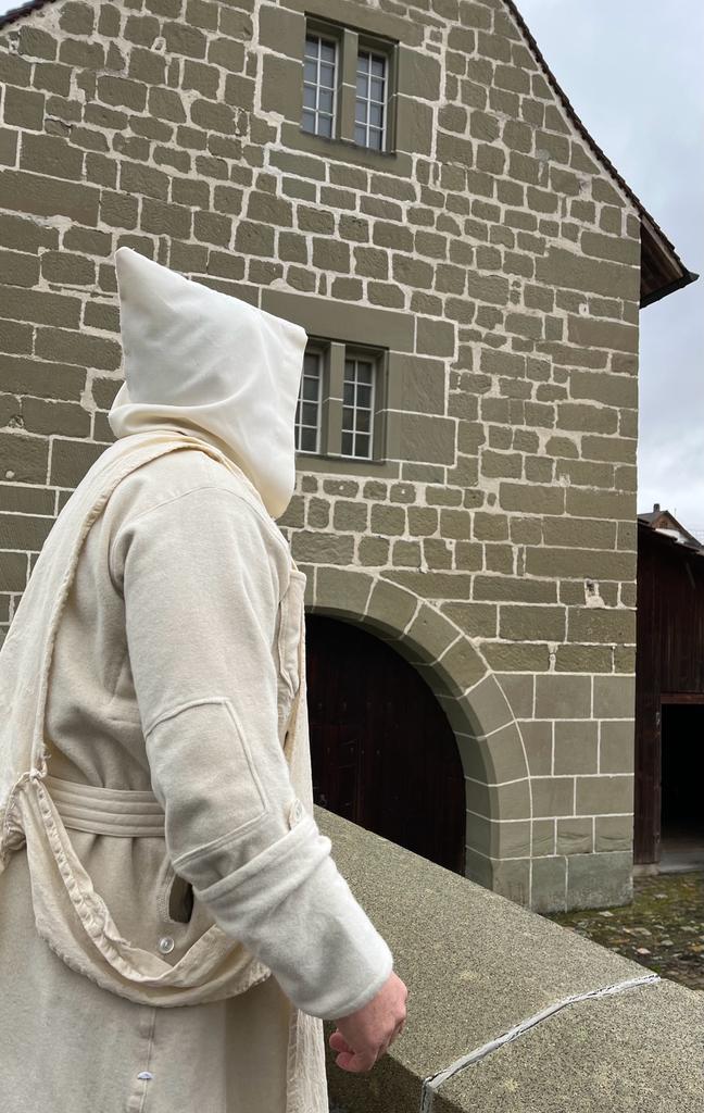 Kartäusermönch Niclaus Schürstein sang uns das Gebet, den Psalm 23 auf lateinisch vor. Der Psalm 23 – Der Herr ist mein Hirte – ist ein Gebet gegen die Angst. Er steht jede Nacht um 23:30 Uhr auf und findet sich mit seinen anderen Kartäusermönchen in der Kirche auf dem Thorberg zum gemeinsamen Gebet ein. Jede Nacht unterbricht er seinen Schlaf. Hellwach betet er für eine Welt die das Beten verlernt hat. Bruder Niclaus hat das Gebet zu seinem Beruf gemacht. Es steht in seinem Leben an erster Stelle. Alles andere wird dem Gebet untergeordnet. Das mitternächtliche Gebet wird auf lateinisch gesunden. Dreimal am Tag kommen alle Mönche in der Kirche zusammen. Mönch Niclaus Schürstein hat sich dem Gebet verschrieben. Er lebt ein Eremitenleben (Einsiedler), die Einsamkeit und das Schweigen ist sein tägliches Leben, die Wortlesung und das Gebet stehen im Zentrum. Das Beten ist das Wichtigste, weil Jesus selber sagt, wir sollen immer beten. Dies ist aber sehr schwierig. Um nicht abgelenkt zu werden, eifert Niclaus Schürstein in der Abgeschiedenheit auf dem Thorberg dem Gebet nach. Das Ziel des Gebetes ist, sich ganz auf Jesus und Gott zu konzentrieren. Mit Gott und Jesus zusammen leben. Mönch Schürstein trägt ein raues, weisses Untergewand, genannt Habit mit den falschen Ärmeln den beiden «fausse manche». Einen weissen Gurt und darüber eine weisse Kutte, genannt Kukulle mit Kapuze. Die Kukulle wird an den Seiten durch breite Stoffstreifen (Bandolen) zusammengehalten. Bruder Niclaus ist Prior des Klosters auf dem Thorberg im Krauchthal. Also Vorsteher, Chef und Leiter der dort lebenden Kartäusermönche und des Klosters.